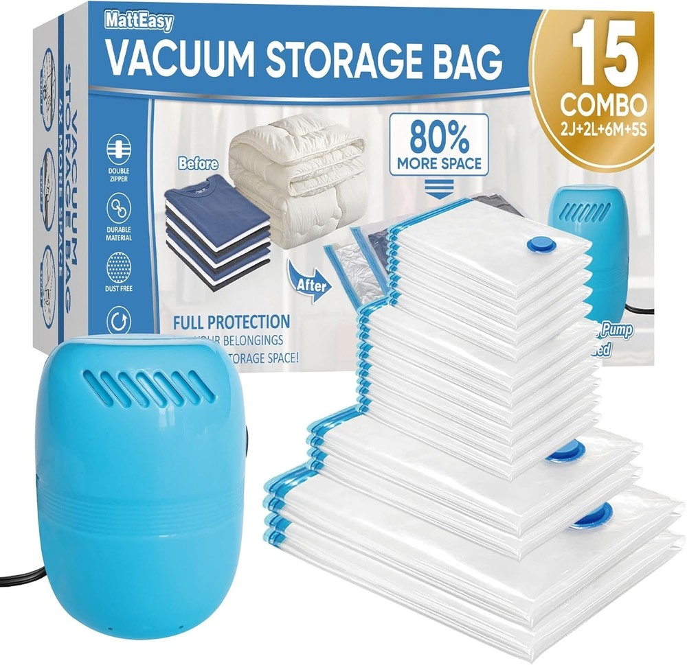 $ 13.82Vacuum Seal Bags for Clothes Storage with Electric Pump 30 Pack 2 Jumbo 2 XLarge 5 Sizes