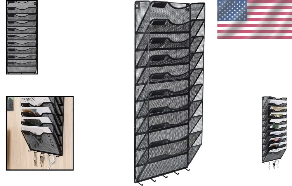 Space-Saving Wall-Mounted File Organizer with Key Hooks - Powder Coated Black ‹ › ‹ › ‹ › ‹ › ‹ › ‹ › ‹ › ‹ › Space-Saving Wall-Mounted File Organizer with Key Hooks • Powder Coated Black Features: Durable Metal Structure: Crafted from high-quality metal, this hanging file organizer features an elegant and attractive mesh wire construction with a durable powder coat finish. Resistant to oxidation and rust, it is designed for years of reliable use. One-Piece Design: Boasting 10 filing pockets arranged vertically, this file holder comes with mounting screws for easy wall installation—requiring only the drilling of two holes. Five hooks underneath provide an ideal solution for holding your keys. Humanize Design: The arching pocket design alleviates the hassles when carrying documents, while the convenient tag slot allows for quick identification of what’s stored in each pocket. Space-Saving Design: Efficiently utilize vertical space by mounting it on the wall. This organizer not only tidies your desktop but also enhances the professional look of your office or home environment. Ensure everything stays in place with easy access to stored files. Dimensions: 13.25 x 4.15 x 32 inches (L x W x H) Benefits: Sturdy and elegant to withstand daily use Maximizes vertical space for a clutter-free environment Unique design for easy accessibility and identification of documents Versatile usage in homes, offices, or any organized space Easy wall-mounting with included hardware Why Choose Our Wall-Mounted File Organizer? Transform your workspace with our Space-Saving Wall-Mounted File Organizer, designed to combine functionality and aesthetics. Its durable metal structure and stylish powder coat finish ensure that it not only looks great but is built to endure the test of time. Say goodbye to clutter and chaos as this organizer utilizes vertical space for maximum efficiency, while arched pockets and a tag slot provide easy access to your important files. Whether you’re enhancing your office or organizing your home, this elegant solution is a must-have. Order now and experience the power of organized living! Shipping Free & Fast Shipping - We offer free shipping to most of the USA with a normal delivery time of 3-7 days. However, due to the current situation, additional delivery time (up to 3 weeks) may be required for some items. Alternative Carriers - We may use alternative carriers (e.g. USPS, FedEx, UPS, etc.) to ensure your package arrives safely and on time. Due to the use of multiple carriers, we are unable to provide a tracking number automatically. Handling Time - Orders are processed and shipped within 1-2 business days of receiving cleared payment. Shipping Restrictions - Shipping to Alaska, Hawaii, Puerto Rico, Guam, and other US territories may incur shipping charges or delivery restrictions. Please contact us before ordering, or your order can be refunded/cancelled. State Restrictions - There may be restrictions based on your state of purchase. For example, certain items may not be shipped to California due to state regulations. Contact for Tracking Updates - If you require tracking updates or have any concerns about the delivery of your order, please feel free to contact us, and we will be happy to assist you. Return Please see our eBay Return Policy. Thank you. Payment We accept all major credit cards, PayPal, and Apple Pay for your convenience. Your payment information is secure and encrypted to ensure a safe and seamless transaction. Please complete your payment within 3 days of purchase to avoid any delays in shipping. Feedback Your feedback is extremely important to us. We strive to provide the best products and customer service possible. If you are satisfied with your purchase, please take a moment to leave us a positive review. If you have any concerns or issues with your order, please contact us before leaving negative feedback. We are committed to resolving any problems and ensuring your satisfaction. Contact Us If you have any questions or concerns, please feel free to reach out to our customer support team. You can contact us through the eBay messaging system. We are available Monday to Friday, 9:00 am to 5:00 pm EST, and we will do our best to respond to your inquiry within 24 hours. Thank you for supporting our small family business! UPC: Not Set MPN: Not Set Model: Not Set Features: Anti-Microbial,Business Card Holder,Coated Rod Tips,Fastener Included,Flap Closure,Heavyweight,Moisture Resistant,Recycled Materials,Reinforced Gusset,Tear Resistant,Durable Metal Structure,One-Piece Design File Holder,Humanize Design,Space-saving Design,Stylish mesh arched design,Rust Resistant,Easy Access Design Brand: Unbranded Number of Pockets: 10 Type: Hanging File Folder Sheet Size: Letter Material: Metal Tab Cut: No Tab Color: Black Country/Region of Manufacture: Not Set