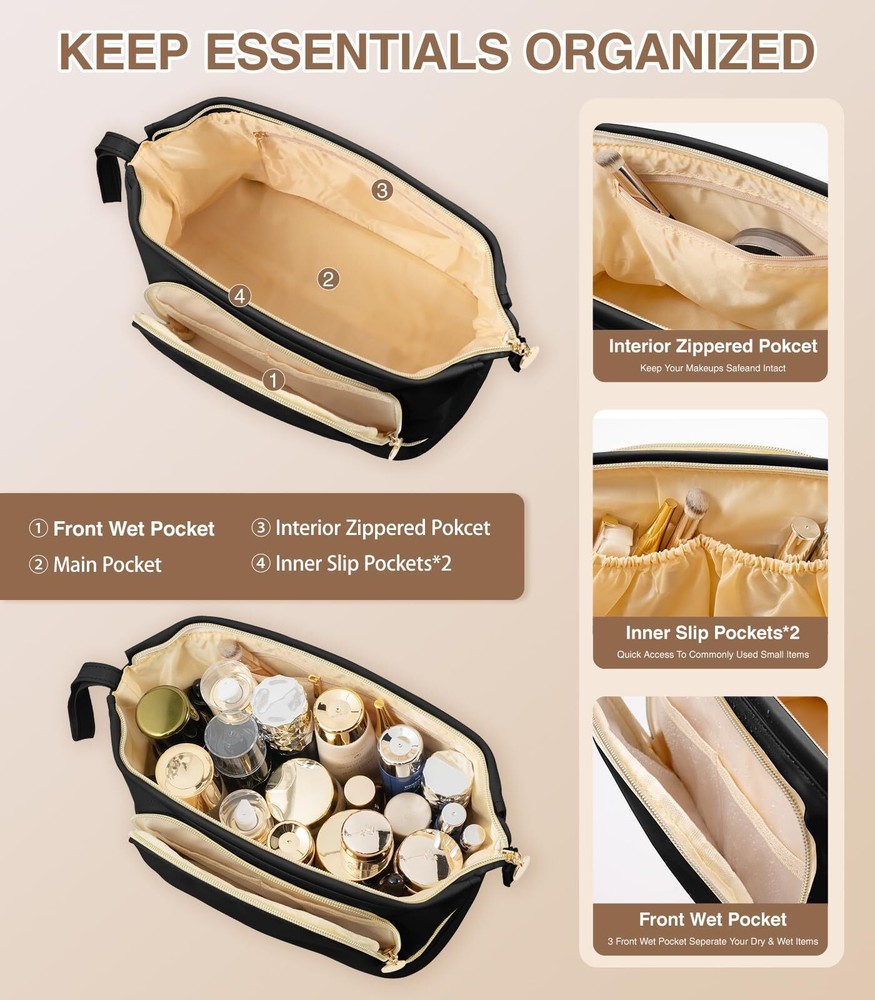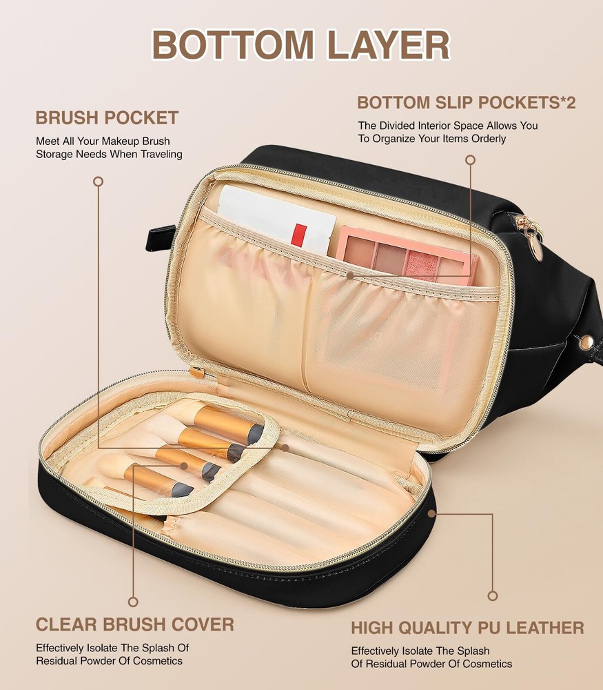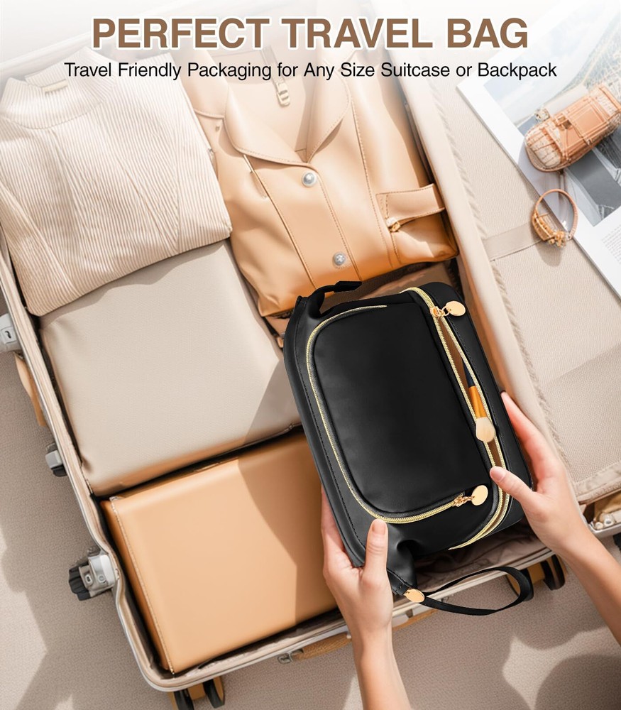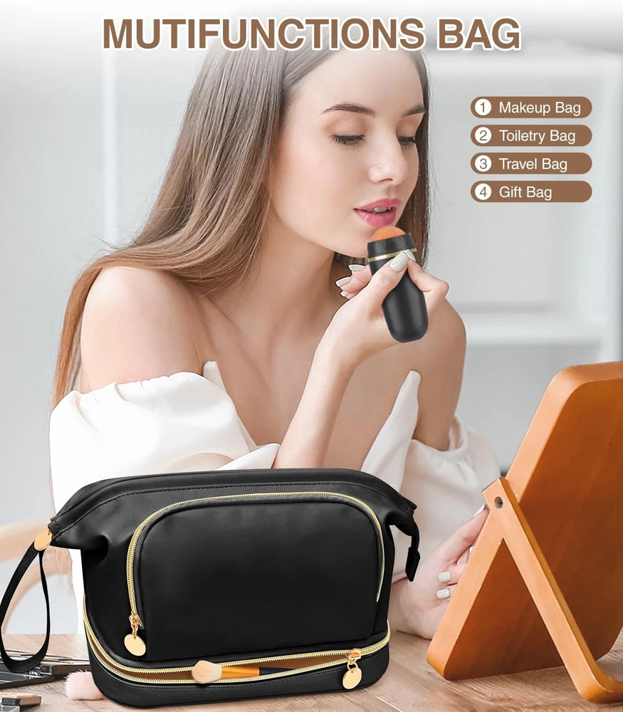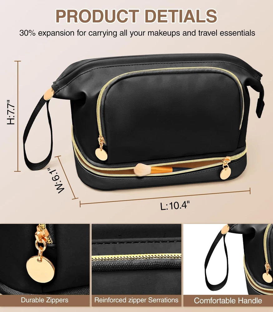 Hairao Large Makeup Bag, Double Layer Makeup Bag Organizer, Toiletry Bag For Women, Cosmetic Travel Bag, Leather Makeup Bag, Portable Toiletry Bag, Waterproof Roomy Bag For Women And Girls, Q-Black 【7.6 L Extra Larger Makeup Bag】For more storage needs, Hairao cosmetic bag increases 30% larger space - 7.6 L EXTRA large capacity for women and girls (Size is 10.4*6.1*7.7 inches). And the anti-slip plaid outer pattern is different from the other makeup bags, look more elegant and fashionable. It is also a multifunctional bag - can be used as make up bag, travel bag, skincare bag, toiletry bag, bathroom bag, jewelry bag and handbag ect. 【Double Layer Toiletry Bag】The make up bag is divided into upper and lower storage areas. Larger opening design of upper layer main areas with built-in iron bars secures the toiletry bag very well, making it easy to quickly access the cosmetics and tools you need. The lower layer has 5 separate makeup brush areas and extra stretch storage area. And the clear brush cover can keep your brush dry and clean, preventing powder flying into air. The makeup bag can make them organiazed enough 【Thickened Leather & Bottom Sponge】The toiletry bag is made of superior waterproof and thickened PU leather. It is easy to clean and can effectively prevent the internal items from moisture. The bottom cushioning sponge protect internal cosmetics better, and sturdy Zipper silkier to use and more delicate to the touch that supply variety of colors for women and girls to choose from 【Portable Travel Make Up Organizer】Multifunctional travel makeup bag with carry handle and brush holder, it allows for versatile uses, such as be a cosmetic travel bag, toiletry bag, skin care bag, travel bag, or daily storage bag. It helps to effectively organize various necessities of makeup 【Present For Women And Girls】The stylish and practical makeup bag organizer makes the ideal present for daily use, or for special festivals SHIPPING Domestic Buyers - We have confidence in our products, but if you are not fully satisfied please contact us within 30 days of purchase and you will get full refund. - We ship within 3 business days of payment, usually sooner - We offer FREE shipping on all orders! - We only ship to the lower 48 states, no APO/FPO addresses or PO Boxes allowed International buyers – please note: Import duties, taxes, and charges aren't included in the item price or postage cost. These charges are the buyer's responsibility. - Please check with your country's customs office to determine what these additional costs will be prior to bidding or buying. * Order Cancellation Policy ** You can return a product for up to 30 days from the date you purchased it. 1. The seller reserves the right to cancel the special case only due to eBay cancellation fee. 2. The decision of seller is the final. 3. The seller will respond to the cancellation request within 2 business days. Please wait for the result of cancellation. 4. In case the cancellation is not completed by some reasons, the buyer can follow the options below to get the refund. 4.1 The buyer can reject the item when it arrives. 4.2 The buyer can send the item back to the seller within 30 days If the buyer receives item (USA Shipment ONLY). The seller will provide the FREE return label to the buyer when the buyer opens " Return Item" case on eBay by using the reason as "Change my mind" ONLY. 5. When buyer has placed the order. The order will be processed and completed by automatic warehouse system within 5 minutes. In case that buyer sends the cancellation request after 5 minutes of placing the order, the request will be rejected. **Sending direct message to cancel the order is not allowed for every case.* Return Policy For the return case - If buyer would like to return the items for refund or replacement, please CONTACT SELLER to receive the free return label from seller. The refund or replacement will be processed with the tracking number of return label which is provided by seller only. The other ways of return which are not approved by seller will not be processed for the refund or replacement.