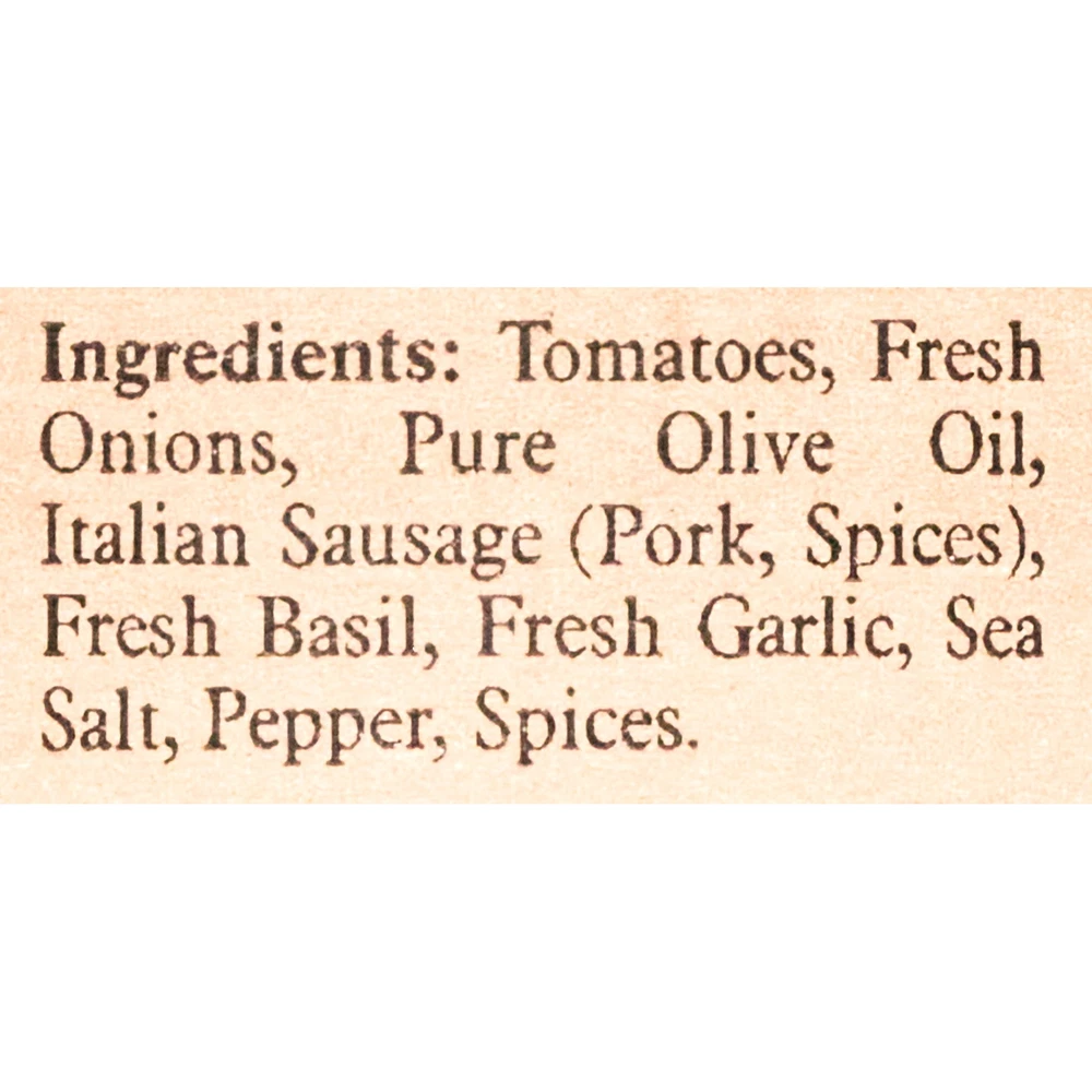 Italian Sausage Pasta Sauce is an authentic Italian tomato sauce that tastes like it's been simmering on the stove for hours. We use only the finest farm fresh ingredients. Vine ripened tomatoes, hand cut onions and basil, Mediterranean sea salt, freshly ground pepper, and imported olive oil. All natural, no preservatives, no added sugar, low in sodium, and packed with antioxidants! The taste is unmatched. Real Italian Sausage Pasta Sauce is 100% natural, Keto and Paleo friendly, has no added sugar, and all ingredients are fresh, farm to can same day!
