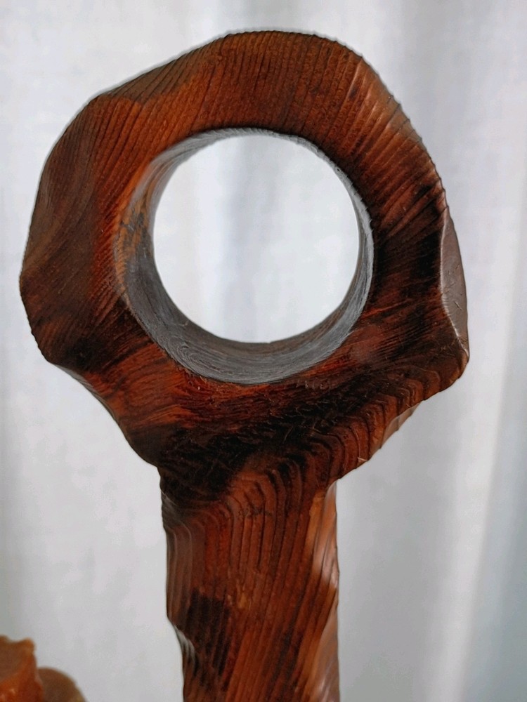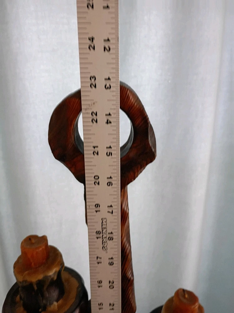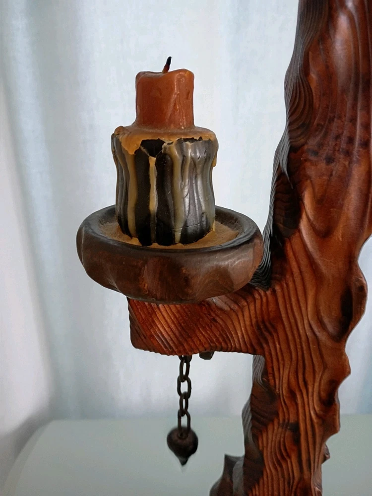Embrace the timeless elegance of the Spanish carved wooden candle holder, a piece that radiates a brutalist aesthetic with its intricate carvings and embossed finish. The rich brown wood underscores the candlestick's vintage appeal, dating back to the 1970s, and adds a touch of sophistication to any setting. Crafted with care, this unbranded candle holder is versatile enough for all occasions and effortlessly complements various decor styles, from the traditional to the contemporary. Whether you're looking to enhance your living space or add to your collection, this candlestick is a charming addition that promises to cast a warm, inviting glow.