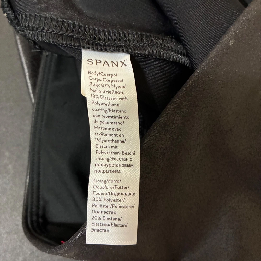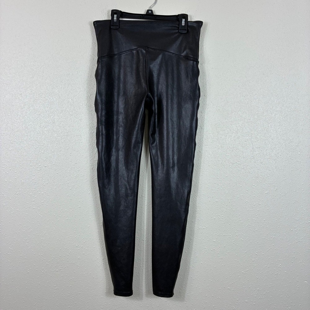 Spanx Black Faux Leather Leggings Size XL Slimming Control Excellent preowned condition! Pull on style Full length Half-waist: 14" Inseam: 27" Length: 36" Rise: 10" Measurements are lying flat, and estimates only. 1P25 18-6170 9 oz Tags: classic, Moto, capsule