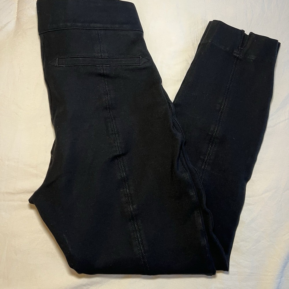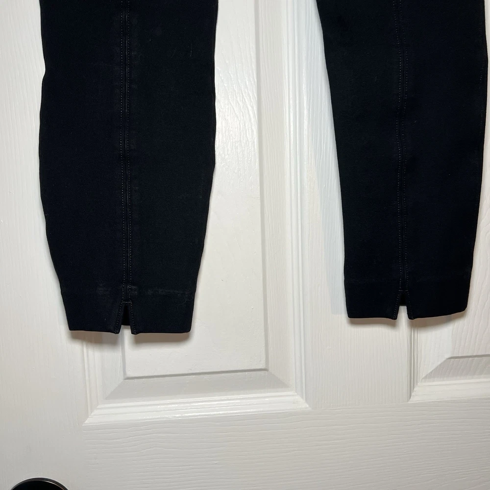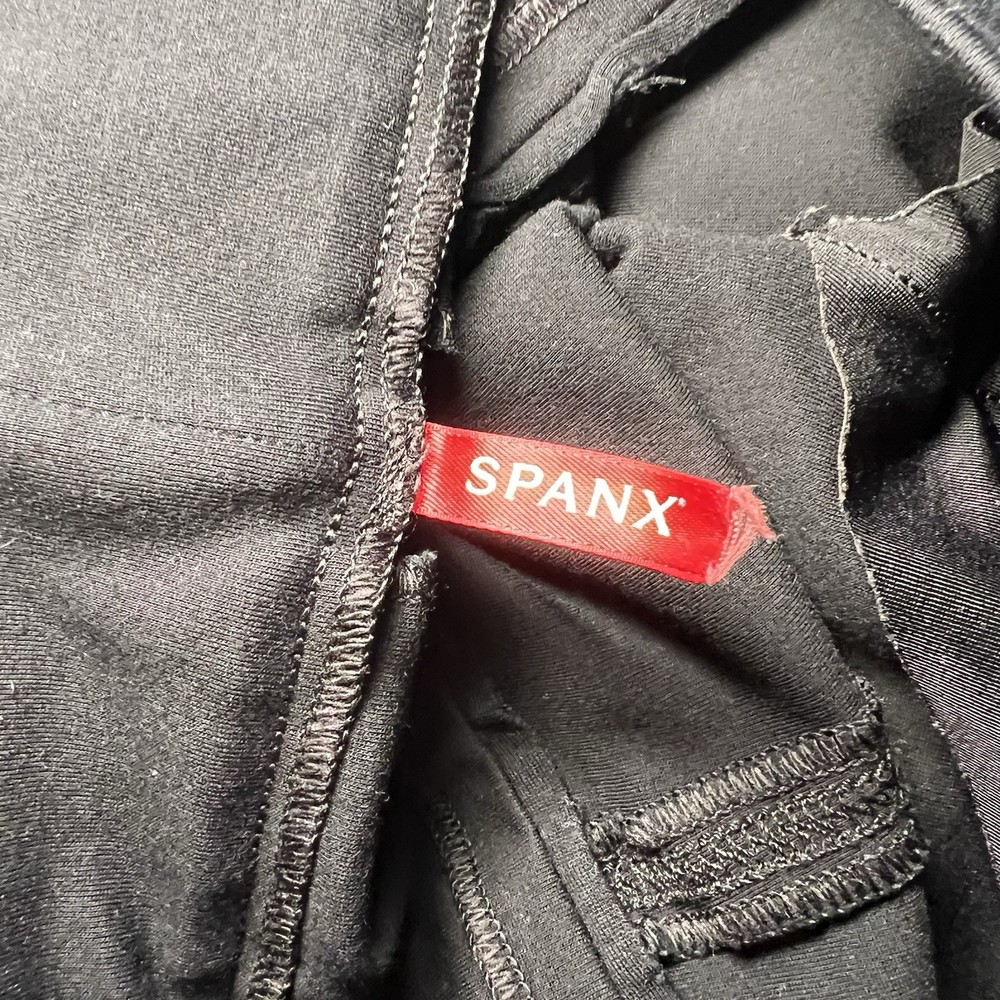 Spanx Thick Black Cropped Leggings, Seam Up the Back Center Of Each Leg, Small Triangle Cut Out at the Bottom of Each Leg On the Back, See Photos. Faux Pockets on Front and Back of the Pants Women's Size Small. Waist Un-Stretched: 26" Rise: 11" Inseam: 24" Pre-owned. No rips, stains, holes or pulls. The size and fabric tag are both missing.