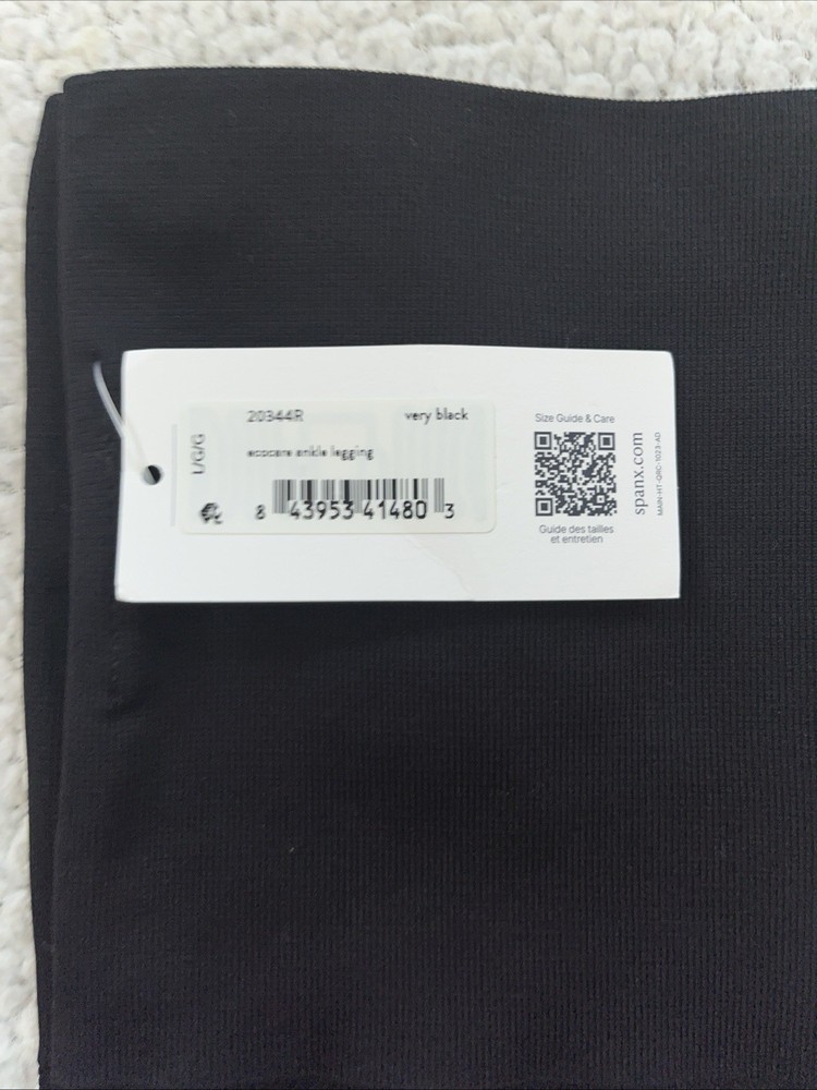 Spanx Ecocare Ankle Legging in size Large offers a sleek and stylish option for women, featuring tummy control and a comfortable inseam of 25 inches. Made with 94% nylon and 6% Elastane, this solid black leggings are machine washable and perfect for various occasions including travel, activewear, and casual outings. The high-rise design and modern style make it a versatile piece for the seasons of summer, fall, and spring, suitable for activities like gym training, walking, and yoga. Perfect for those looking for a blend of designer fashion and practical functionality in their leggings.