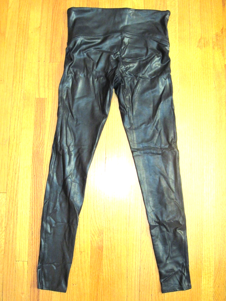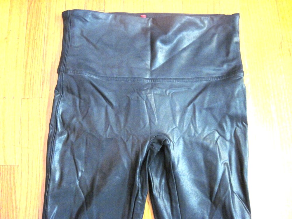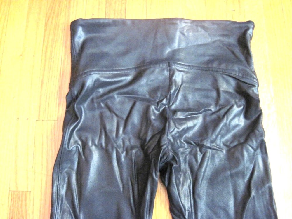 Spanx Faux Liquid Leather Ankle Length High Waist Leggings Black Size Small. Made of form-fitting 87% Nylon, 13% Spandex. Relaxed 26" waist, 4" wide waistband, 30" inseam. Comes from a pet free smoke free shop.