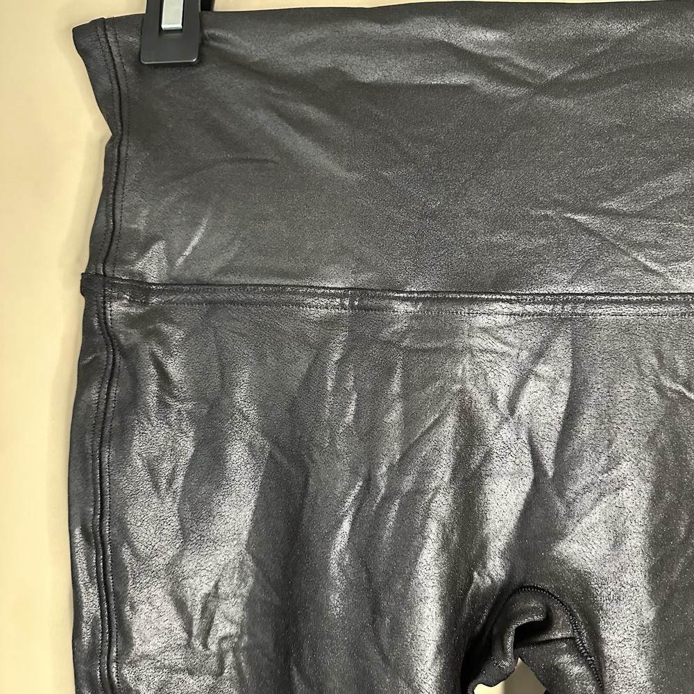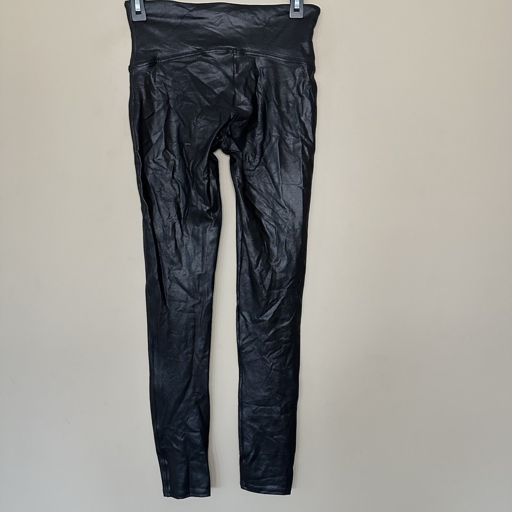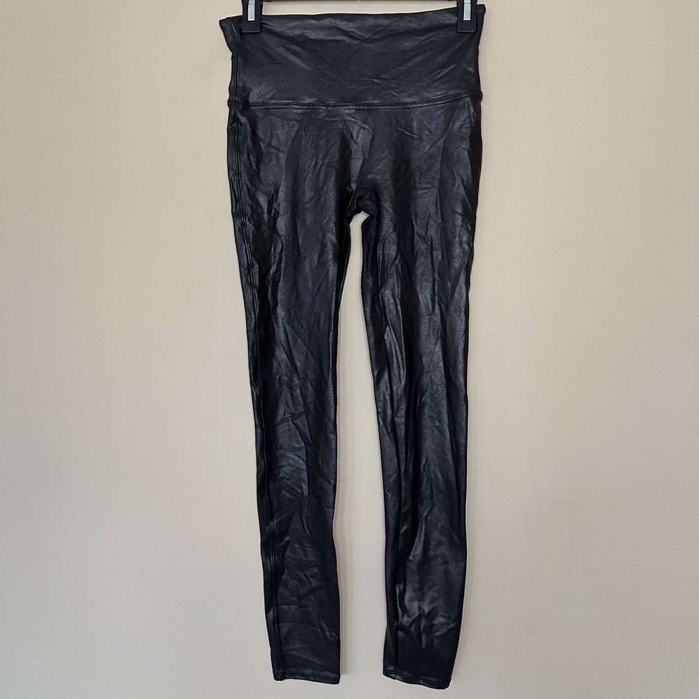 Spanx Women's Size Medium Shiny Leggings Faux Leather Black Hight Waist with wide waisteband Stretchy pull on pants excellent preowned condition tags: yoga dance shape wear slimming whimsigoth gothic rock biker bikercore 📦Packaged with care 📬 I will ship it out within 2 business days 🙂Smoke free home ♥️Offers welcome.