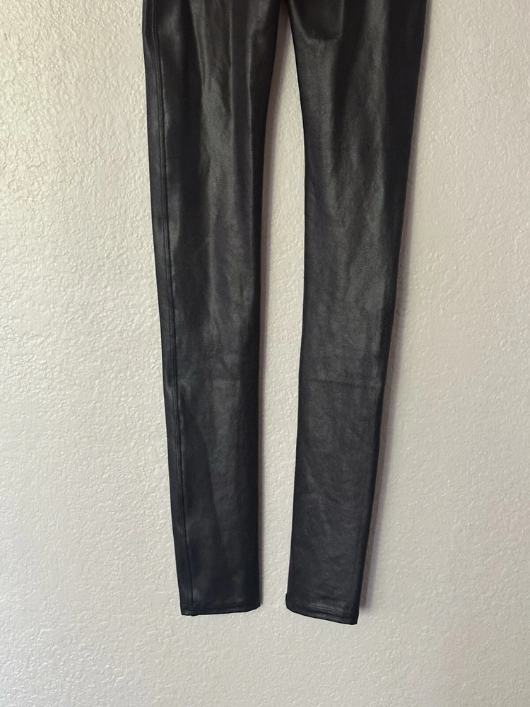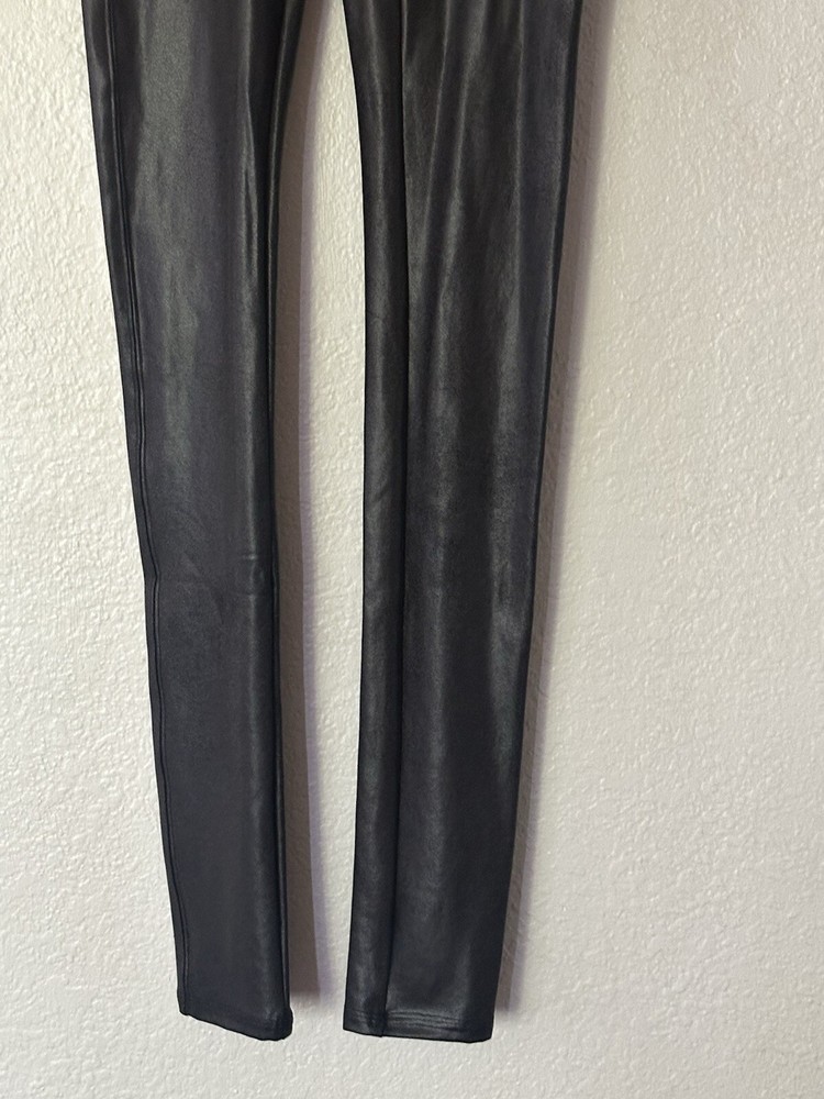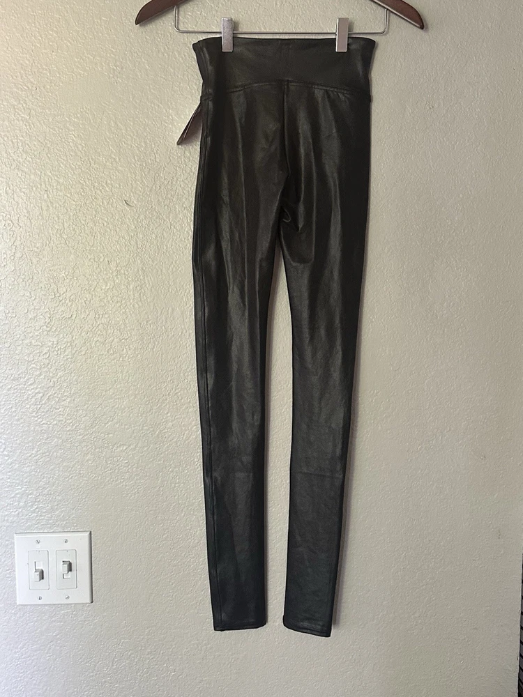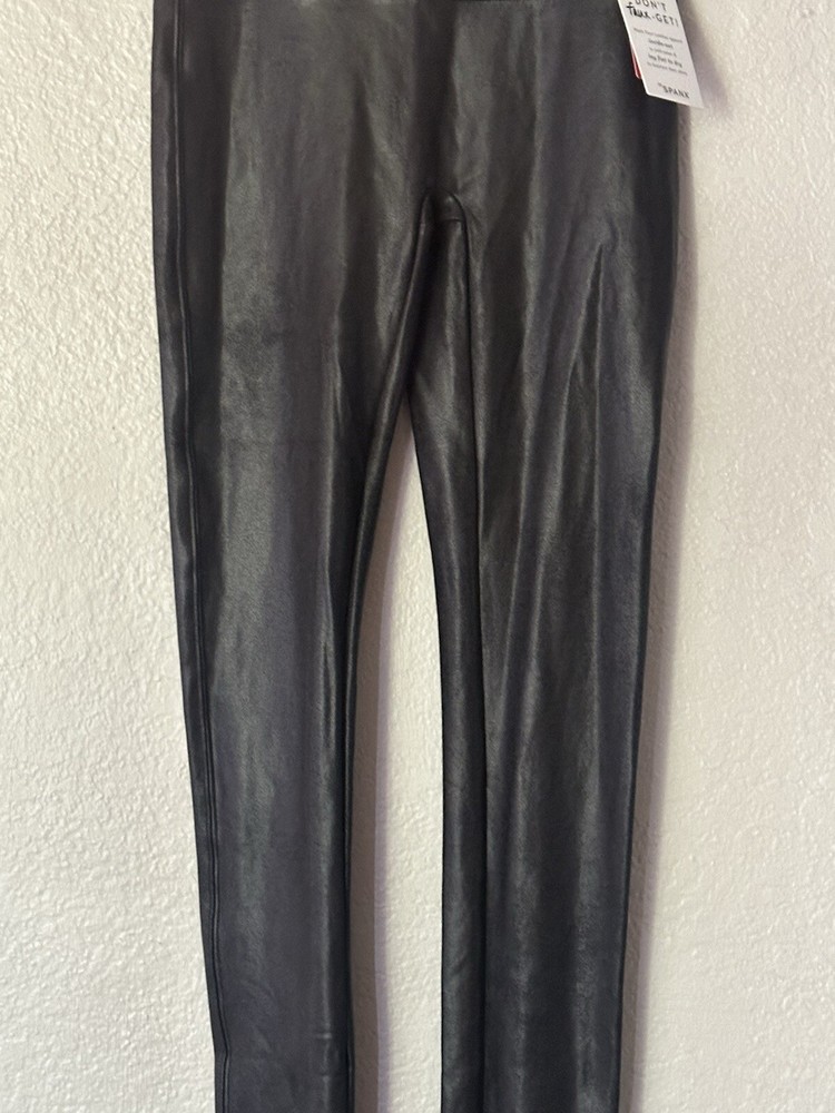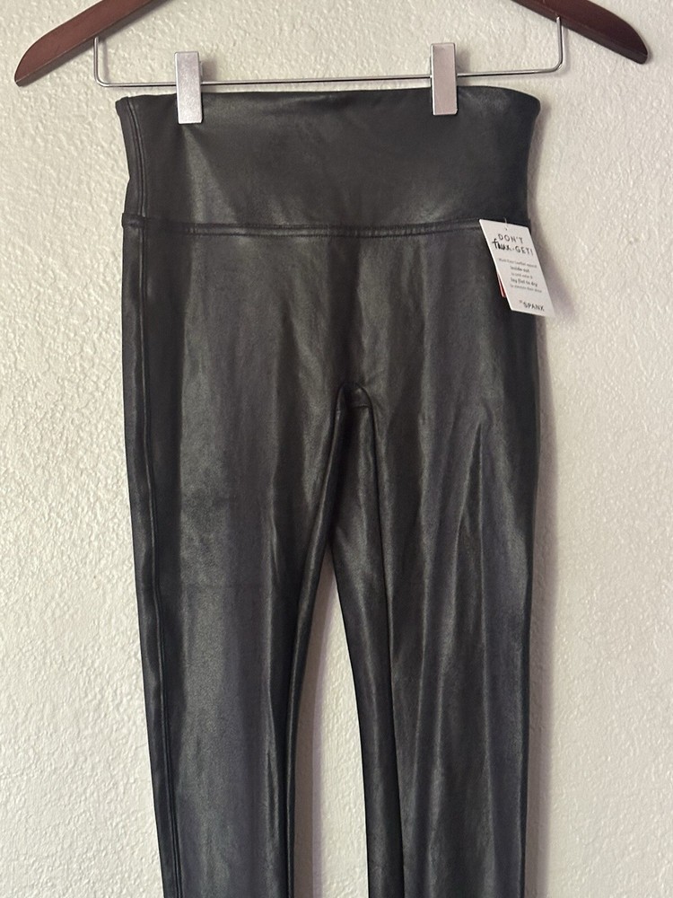 Elevate your wardrobe with these Spanx faux leather leggings in black. Designed for women who are tall and looking for a stylish yet comfortable option, these leggings are perfect for any occasion. Made with high-quality material, these leggings are durable and will last you a long time. The leggings feature a sleek design and are perfect for pairing with your favorite top and heels for a night out or with a cozy sweater and flats for a casual day out. With Spanx's signature support, these leggings will shape your body and give you the confidence you need to rock any look. Don't miss out on this must-have addition to your wardrobe.