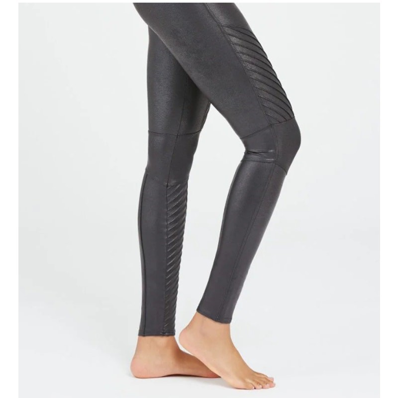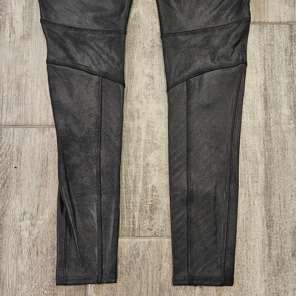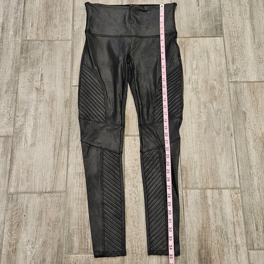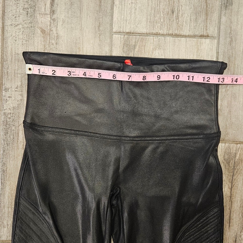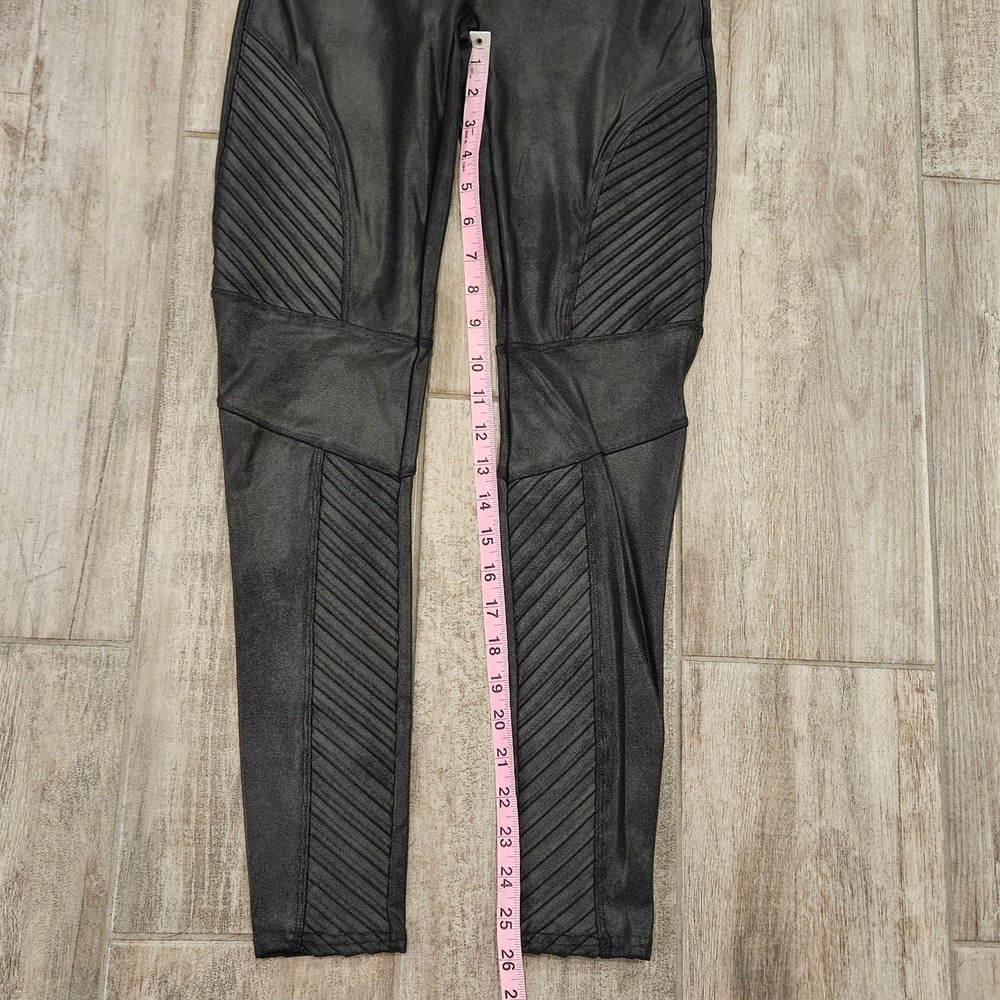Spanx Leggings Size L Faux Leather Moto Black Stretch High Rise Biker Streetwear Measurements are included in the photos With an edgy twist to the Faux Leather Women's Leggings, Moto is your new go-to. Complete with hidden shaping, you can rely on our black Moto leggings to keep you smooth, no matter how "edgy" your outfit! Contoured Power Waistband offers tummy shaping and a perky rear view! Center-seam free Care: Machine wash cold, gentle cycle. Do not use fabric softener. Inside out. Only non-chlorine bleach when needed. Lay flat to dry. Do not iron. Excellent Pre Owned Condition Bundle for a discount or send an offer