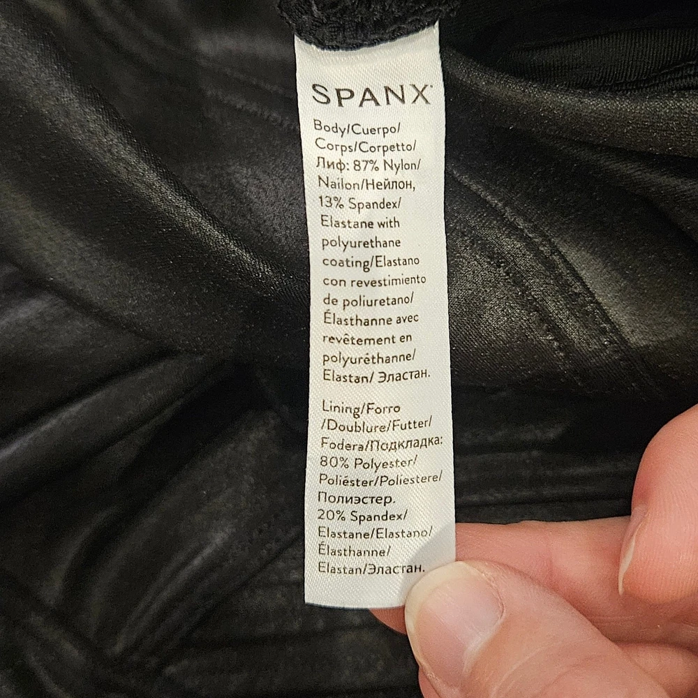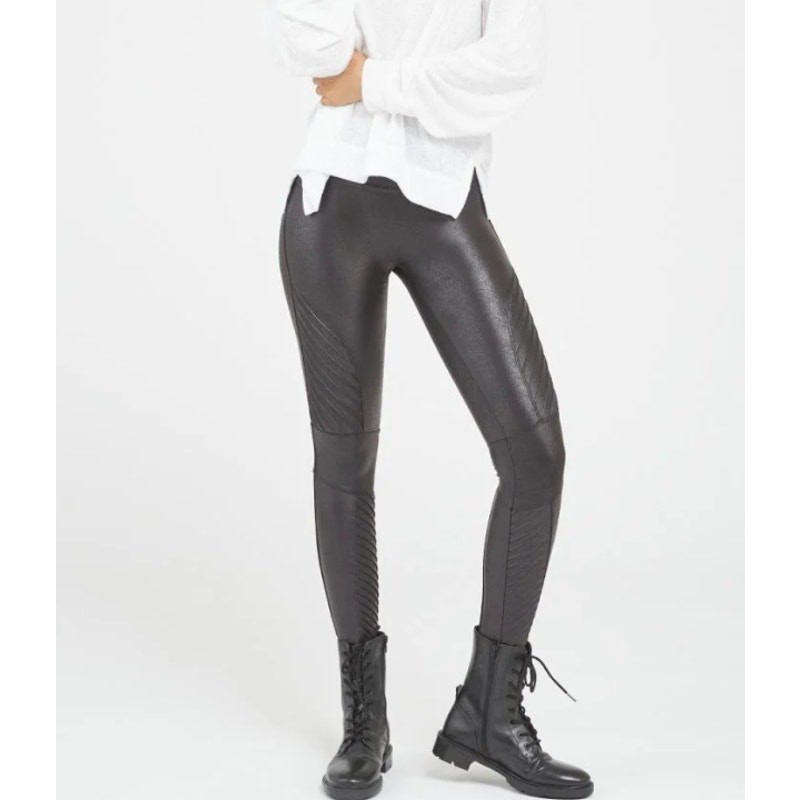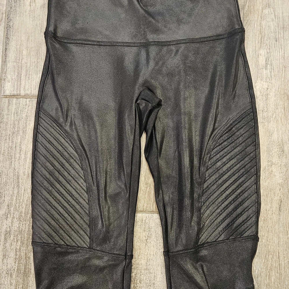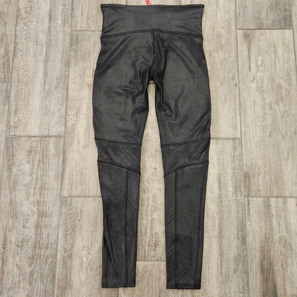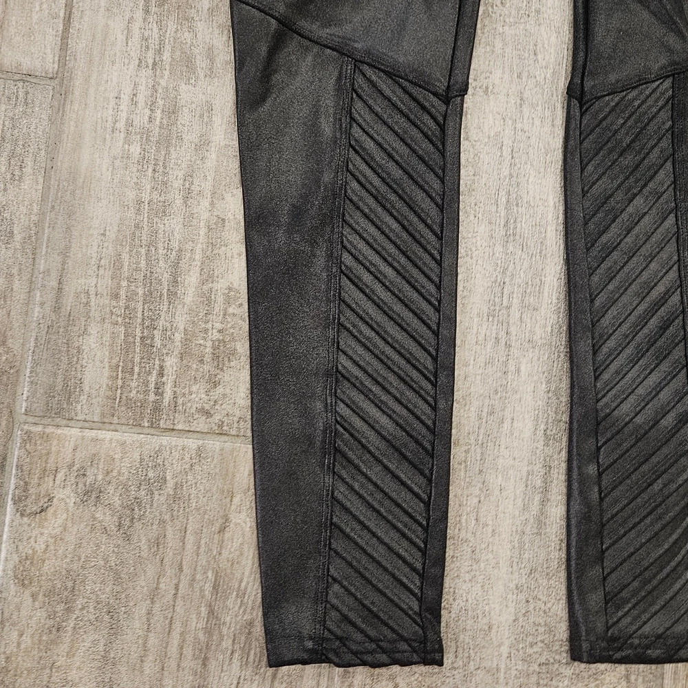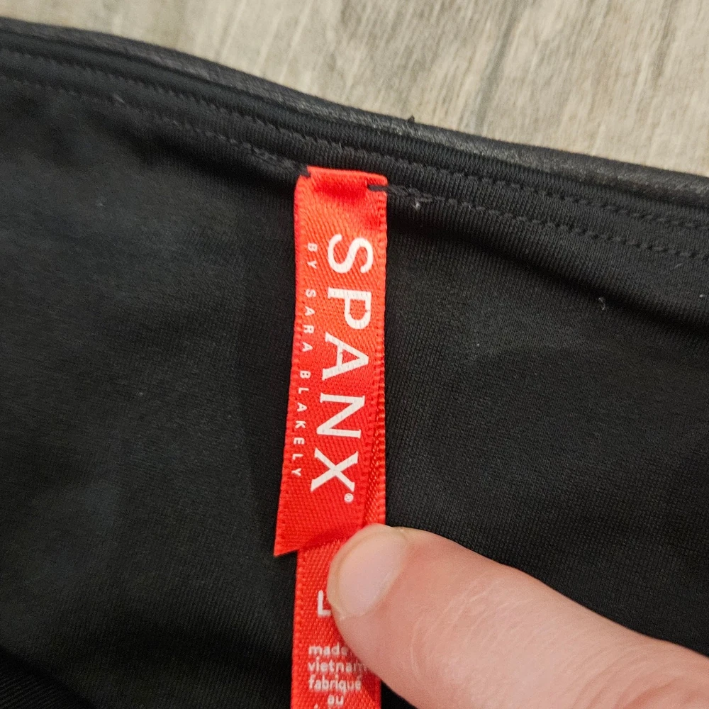 Spanx Leggings Size L Faux Leather Moto Black Stretch High Rise Biker Streetwear Measurements are included in the photos With an edgy twist to the Faux Leather Women's Leggings, Moto is your new go-to. Complete with hidden shaping, you can rely on our black Moto leggings to keep you smooth, no matter how "edgy" your outfit! Contoured Power Waistband offers tummy shaping and a perky rear view! Center-seam free Care: Machine wash cold, gentle cycle. Do not use fabric softener. Inside out. Only non-chlorine bleach when needed. Lay flat to dry. Do not iron. Excellent Pre Owned Condition Bundle for a discount or send an offer