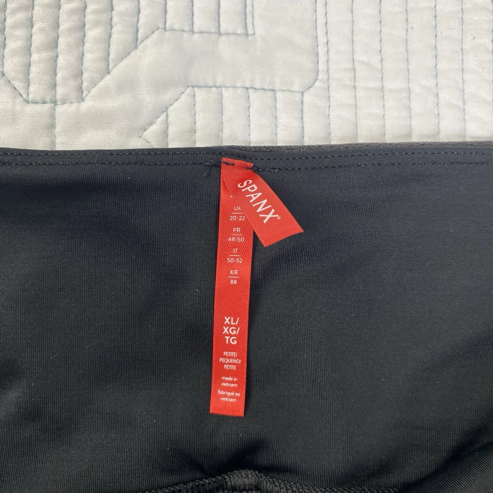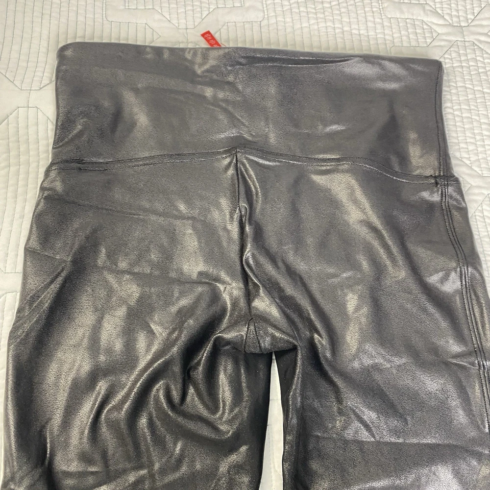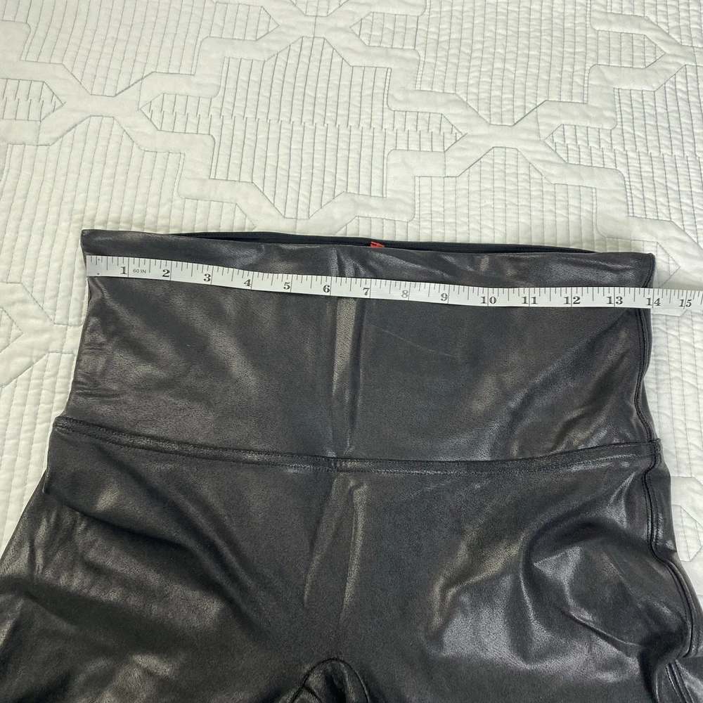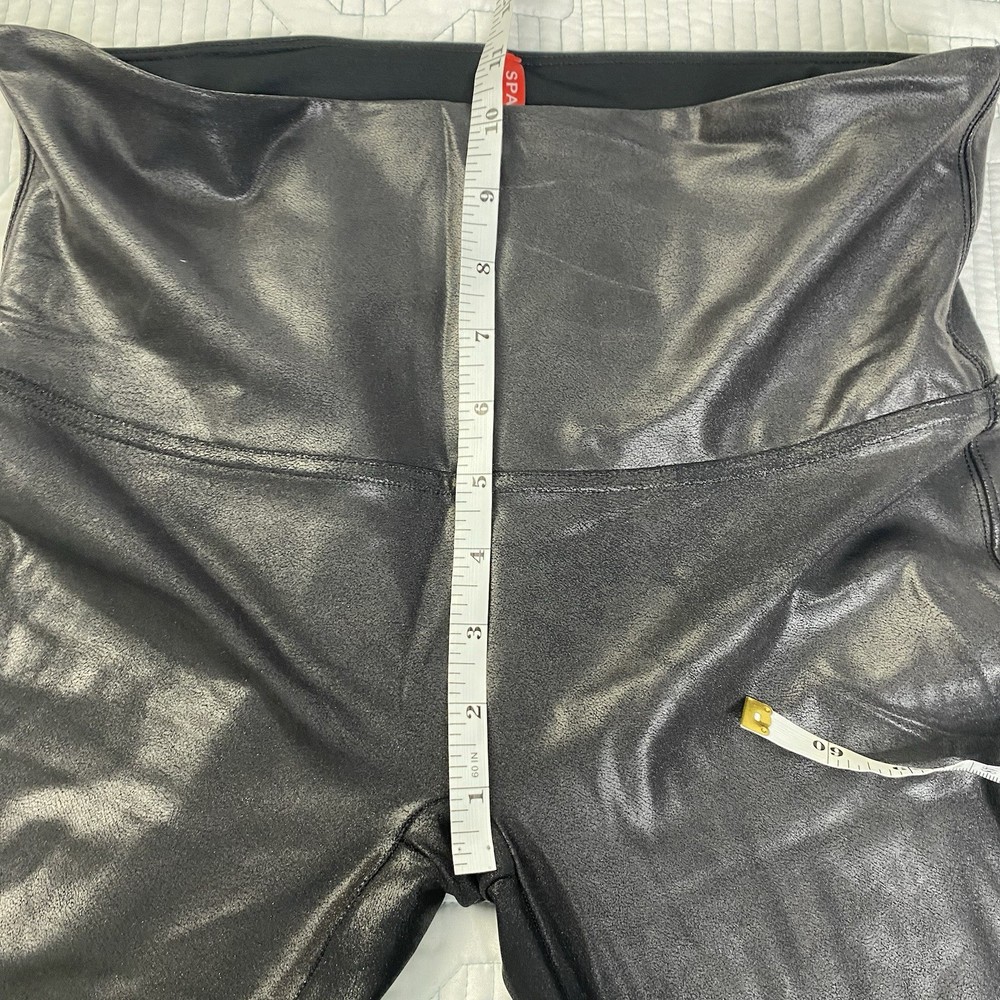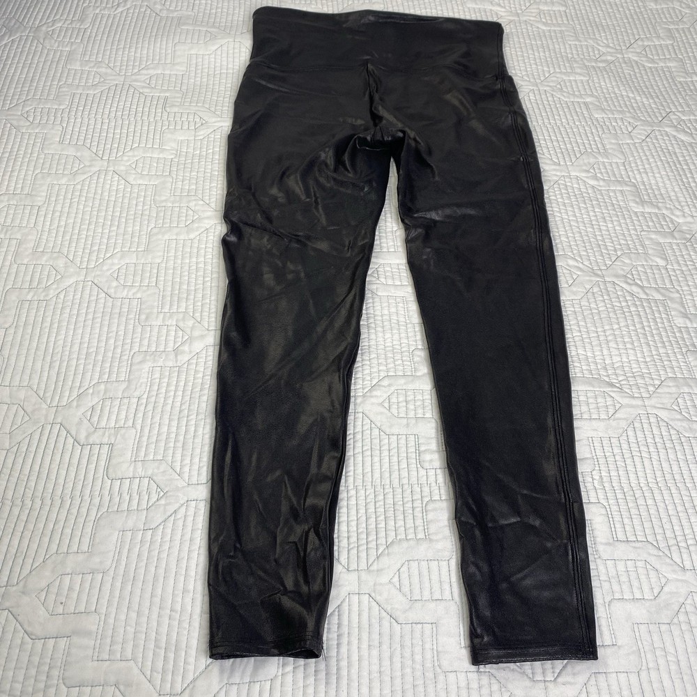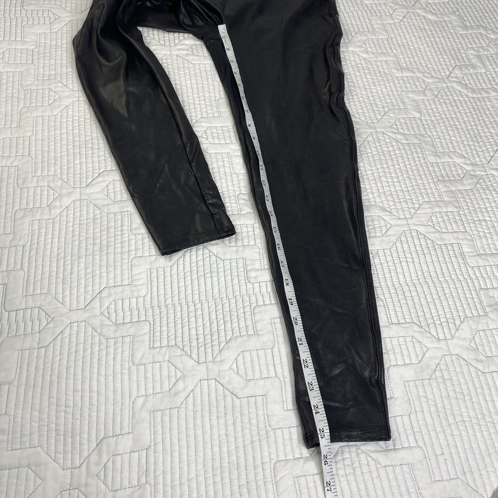 Spanx Faux Leather Black Leggings Shiny Women's Size XL Petite Very good pre-owned condition. No stains, tears or pilling. Please see photos for approximate measurements to help ensure fit.