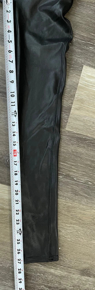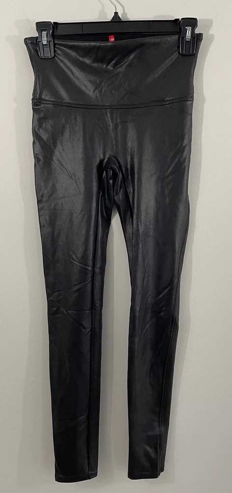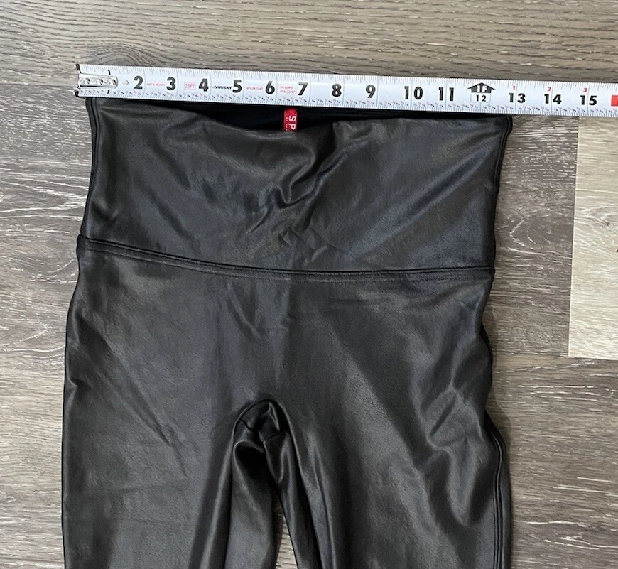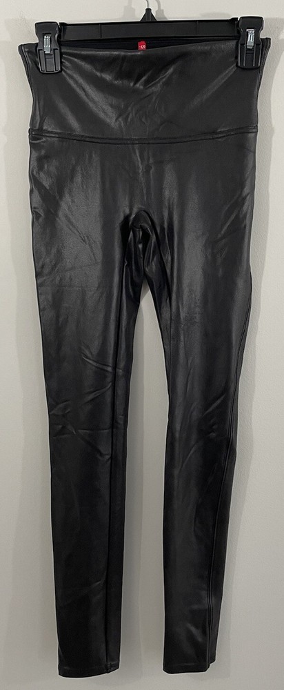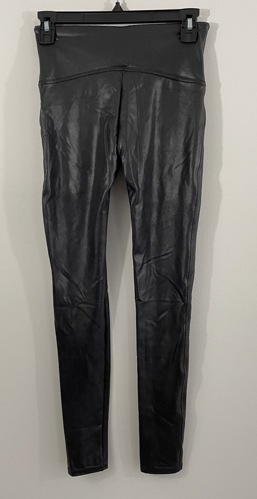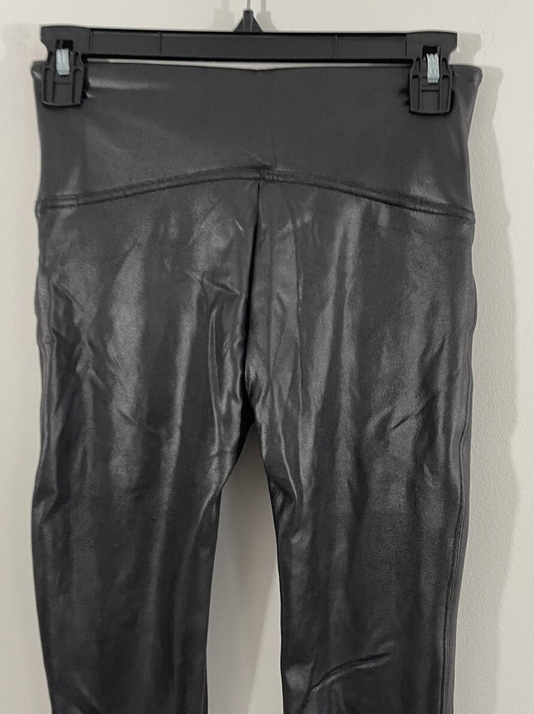 100% authentic SPANX FAUX LEATHER LEGGINGS in a size MEDIUM! ***Color is a Shiny Leatherette Black. gently pre-owned no flaws, measurements in photos Product Description Faux Leather that flatters. This best-selling style features sleek, smoothing faux leather fabric that shapes and lifts and our contoured Power Waistband for core compression. Style No. 2437 Details Sleek and smoothing faux leather fabric shapes and lifts Contoured Power Waistband for core compression Center-seam free for no more camel toe High-waisted design Dress up or down