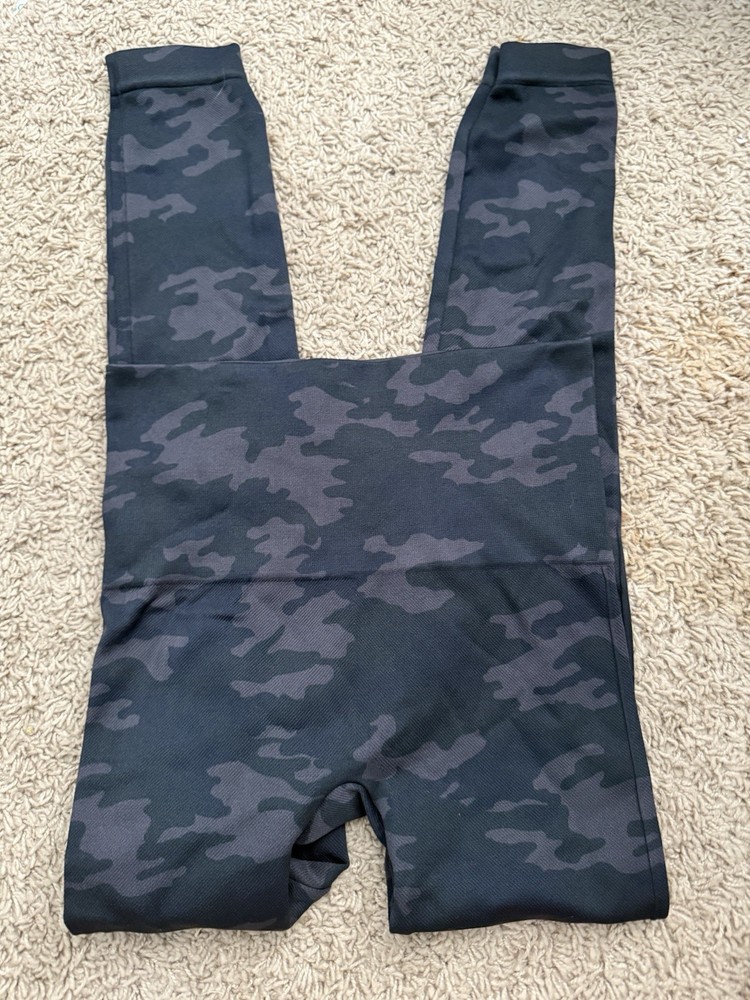 Spanx Seamless Look At Me Now Leggings Pants Women Small Black Camo High Waist
