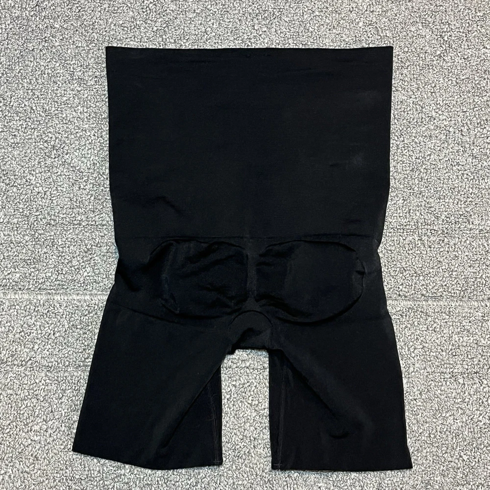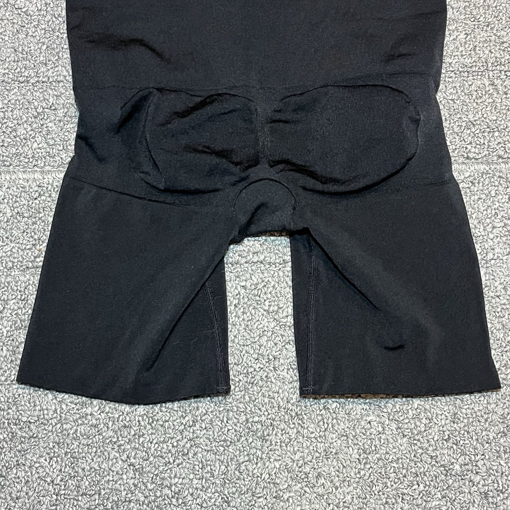 Spanx High Waisted Shaper Shorts Tummy Control Soft Size Large Black See measurements for accurate fit. Waist 12 inches across. Inseam 6 inches Rise 11 inches All measurements are done flat lay