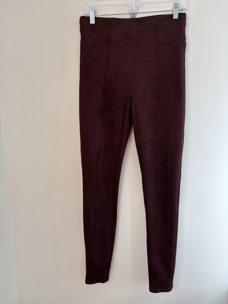 Spanx faux suede leggings medium tall rich brown good condition, 28x30