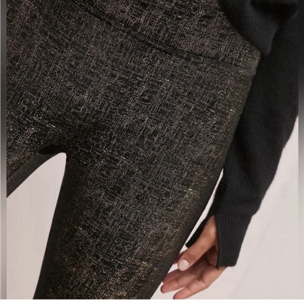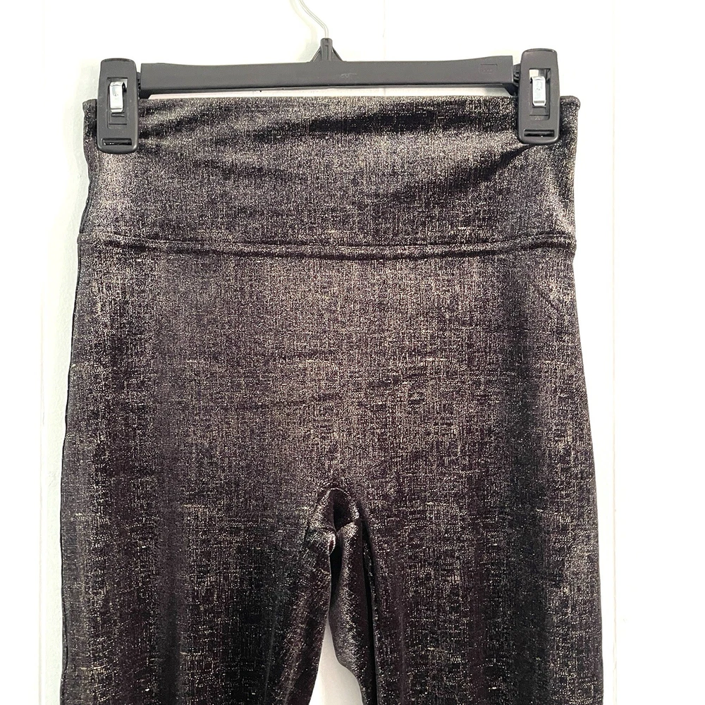 Spanx Metallic Foil High Waist Leggings Black Gold Shaping Control