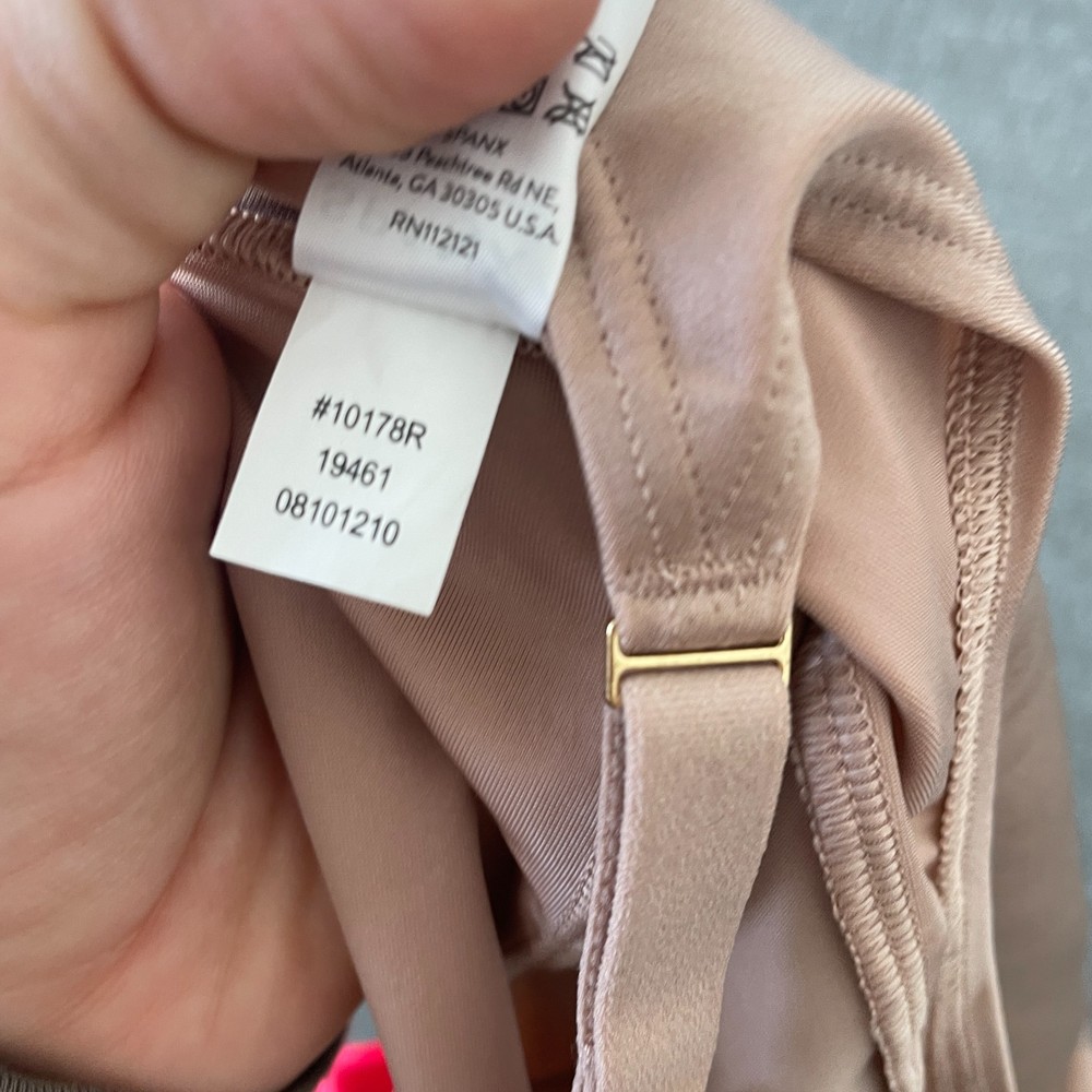 Type: Shapewear Vintage: No Compression Level: Firm Underwire Type: Wireless Material: Nylon Garment Care: Machine Washable Personalize: No Accents: Strap Fabric Type: Blended Fabric Size: S Department: Women Pattern: Solid Size Type: Regular Style: Shaping Top Brand: Spanx Number in Pack: 1 Pack Color: Beige Opacity: Opaque Compression Area: Body, Waist, Abdomen Band Size: S MPN: 10178R