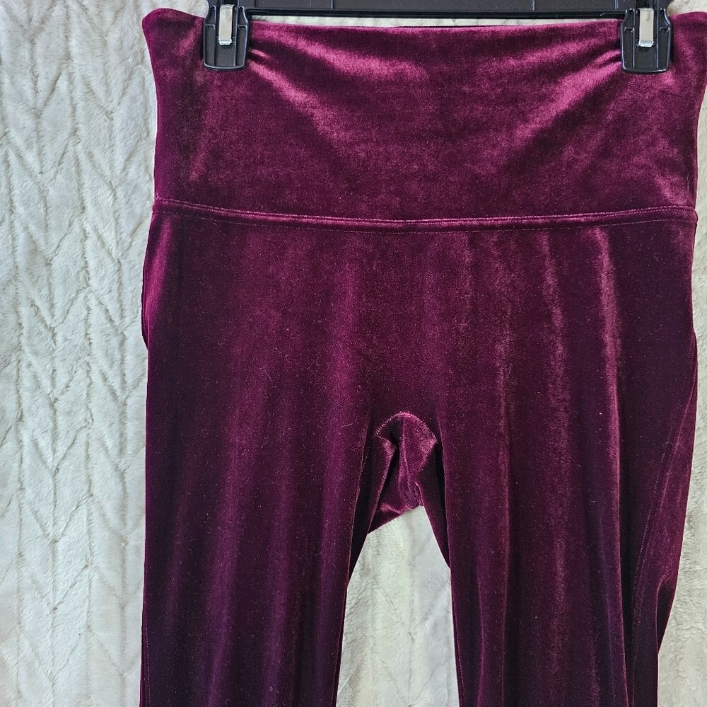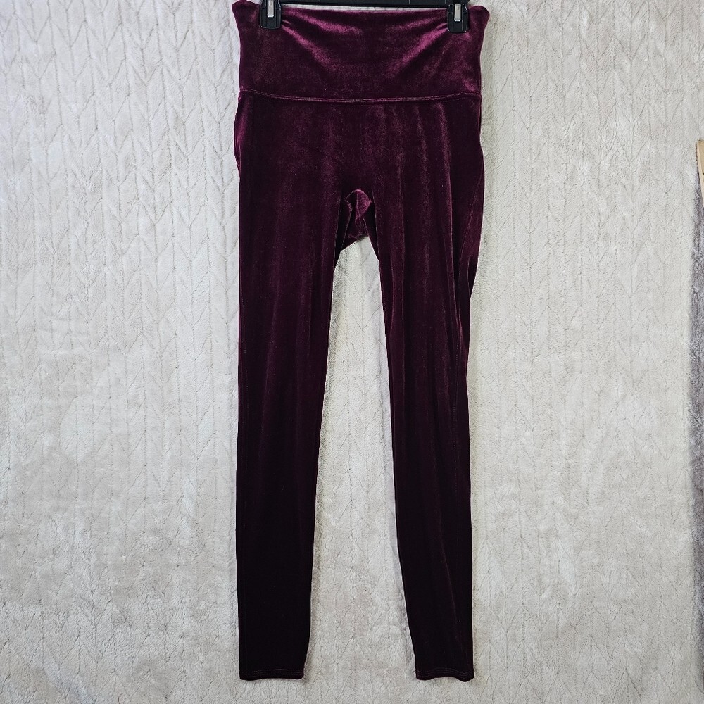 Classic pair of high quality velvet leggings in a deep wine Burgundy color. In good pre owned condition.