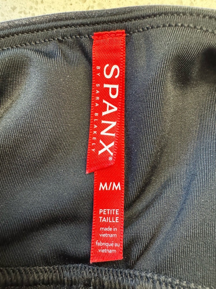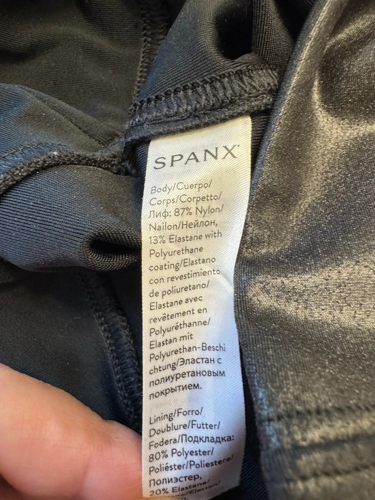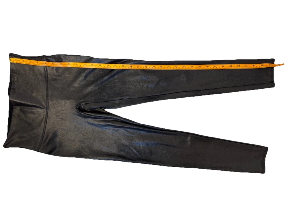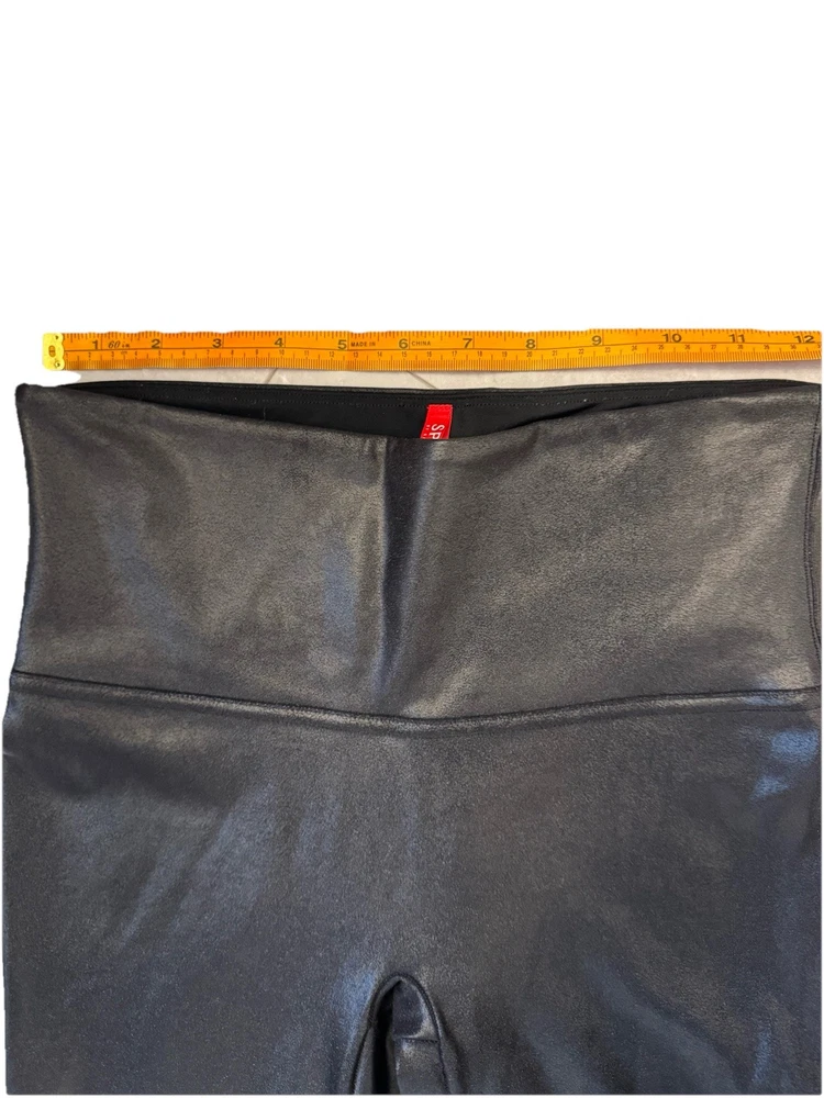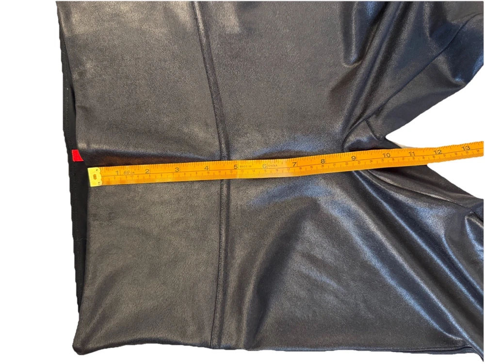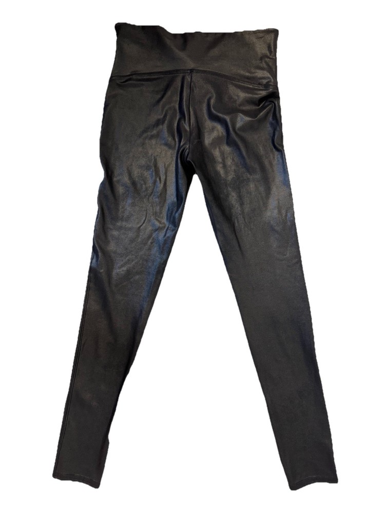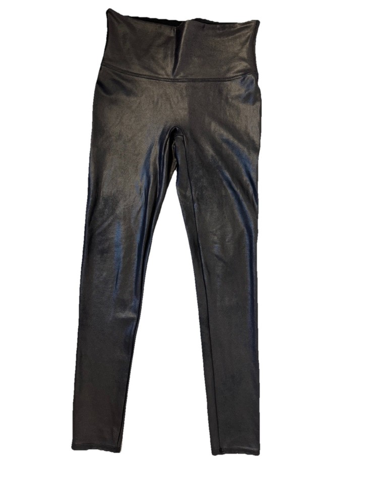 Spanx Womens Faux Leather Leggings Size Medium Petite Black Shiny Stretch. Condition is Pre-owned - Excellent. Shipped with USPS Ground Advantage.