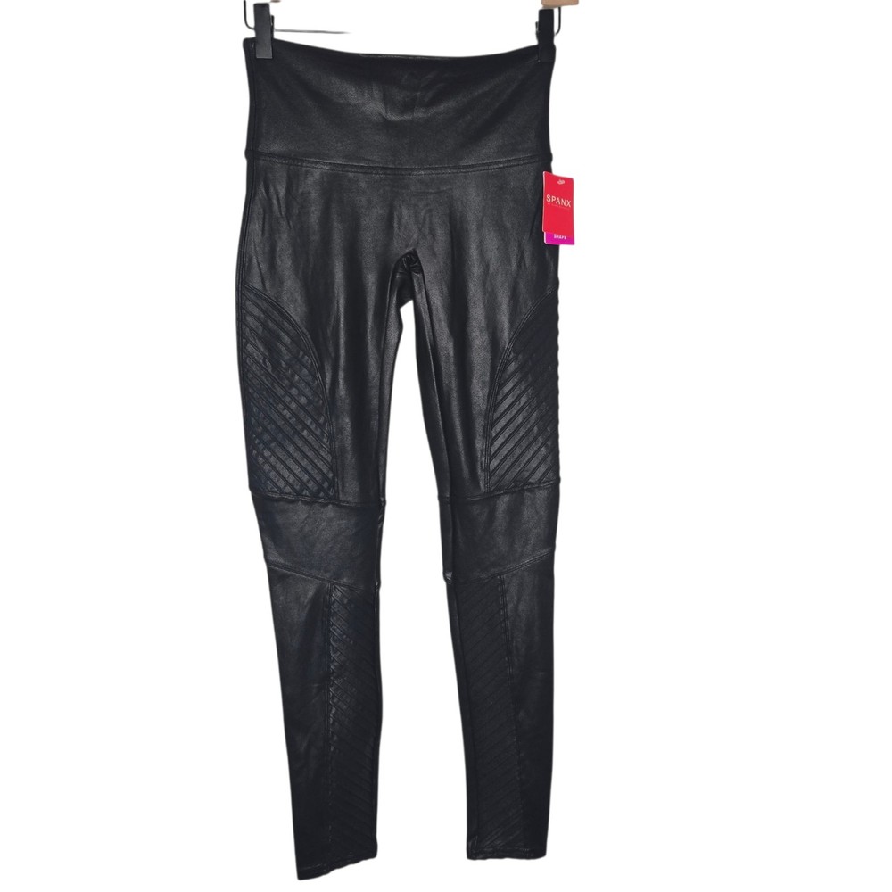 Spanx Shape Womens Faux Leather Moto Leggings Size Medium Black Shaping Waistband Hidden Power Mesh Style# 20136R Nylon/Spandex/Polyester Made In Vietnam 27" Waist (Stretchy) 9" Rise 27" Inseam New With Tags *Quick Shipping *Accepting Reasonable Offers