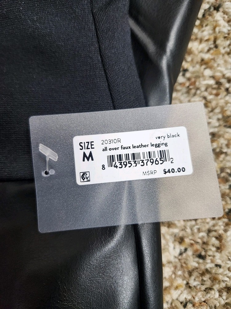 Red Hot by Spanks Women's Faux Leather Leggings. Size is medium and color is "very black". Manufacturer's tag intact, brand new, never worn.