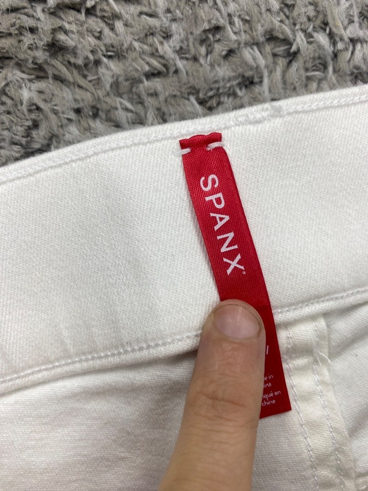 Size Type: Regular Rise: High (Greater than 10.5 in) Theme: Athleisure, Classic, Designer, Modern Performance/Activity: Driving, Walking, Yoga Size: S Color: White Fabric Wash: Light Features: Shaping, Stretch Type: Leggings Fabric Type: Denim Material: Cotton, Cotton Blend, Polyester Style: Ankle Pattern: Solid Brand: Spanx Department: Women Occasion: Activewear, Casual, Travel, Workwear