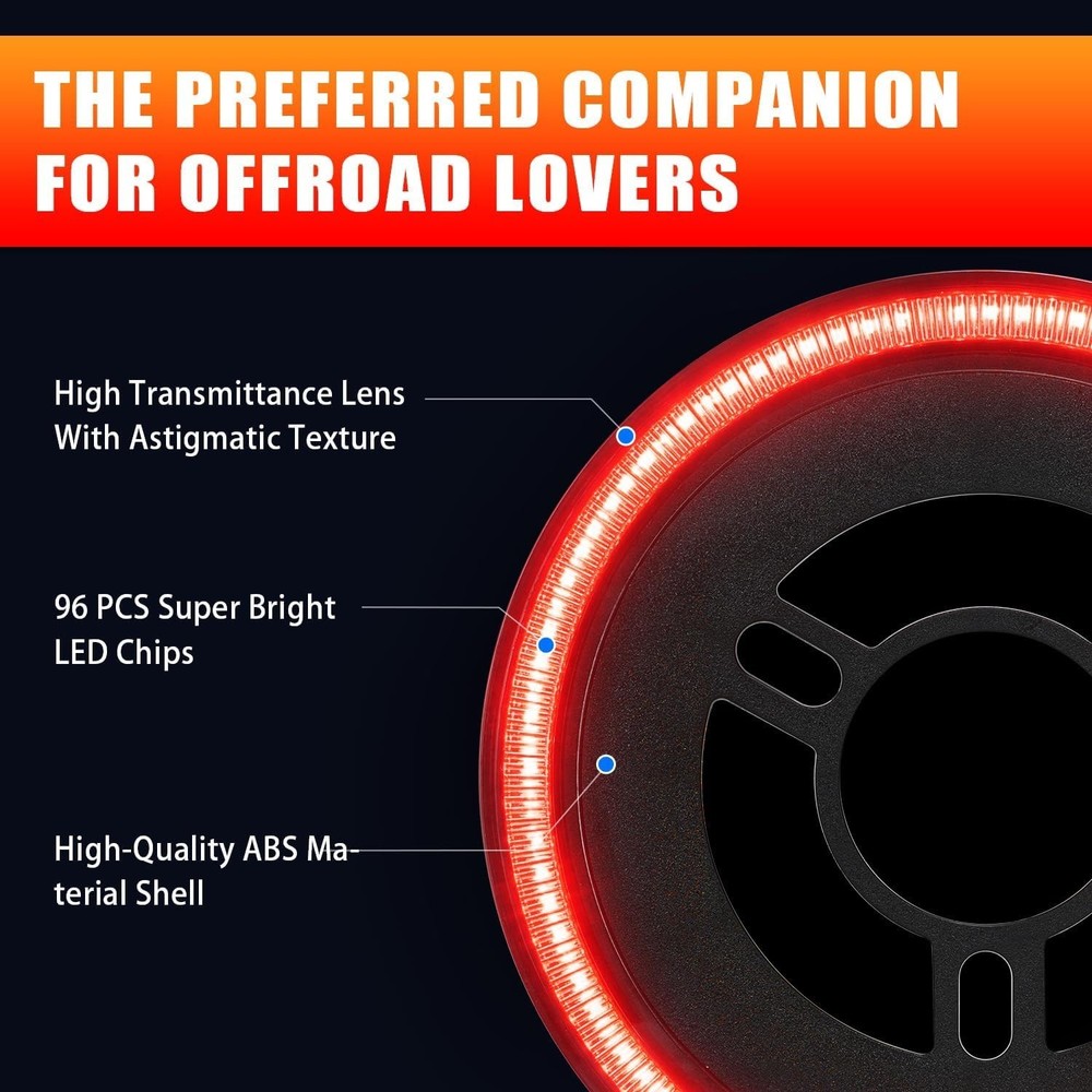 Spare Tire Brake Light Fit for Jeep Wrangler 2007-2017 JK JKU YJ TJ, Tail Light Rear LED Ring Wheel Light Plug and Play Red Lens About this item DESIGN UPGRADE: The CAFOPAR spare tire brake light features an advanced polypropylene mounting plate and a highlight lens with an astigmatic texture, delivering a clear, bright, and instant brake warning signal. Its plug-and-play design allows for quick and easy installation, taking only about five minutes to complete IP68 WATERPROOF: CAFOPAR LED spare tire brake lights are crafted from high-quality automotive-grade ABS material and a PC lens. The fully sealed housing design prevents moisture from entering, ensuring the brake light performs reliably in various extreme weather conditions, including rain, fog, and snow EASY INSTALLATIOIN: The third brake light is easy to install with a plug-and-play design—no drilling or wire cutting required. Simply remove the spare tire, mount the brake light onto the stud, and connect one plug to the factory car harness and the other to the factory third brake light. Ensure the connectors are fully engaged and locked in place, then reattach the spare tire. The installation is now complete COMPATIBILITY: The 3rd brake lights fit for jeep Wrangler 2007-2017 JK JKU YJ TJ. The brake warning light will promptly and clearly illuminate the inside of the spare tire, effectively reducing the risk of rear-end accidents and enhancing your driving safety
