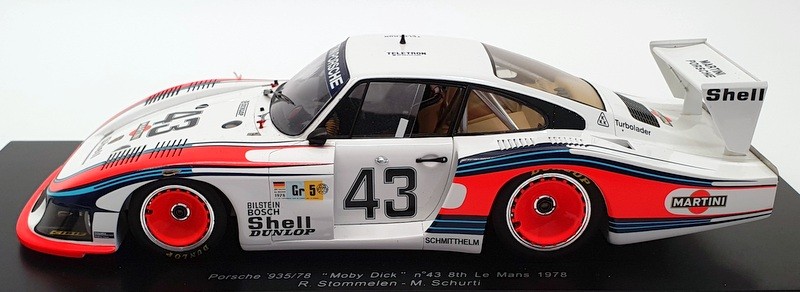Spark Model 1/18 Scale 18S030 - 1978 Porsche 935/78 Moby Dick #43 8th Contact Us Home About Us Feedback Contact Us Add to favourites Spark Model 1/18 Scale 18S030 - 1978 Porsche 935/78 Moby Dick #43 8th click thumbnails above to enlarge Shop Home Our Feedback Ask a Question Product Description 1/18 Scale Die Cast Model by Spark Model The MODEL is in EXCELLENT condition, previously displayed, aerial is missing. The BOX is in EXCELLENT condition, slight wear. SEE IMAGES FOR BEST DESCRIPTION. Product Details Scale 1/18 Material Die Cast Brand Spark Model EAN 7427043237508 Additional Info R.Stommelen M.Schurti GRADING CONDITIONS MINT - The item is in perfect condition. NEAR MINT - Almost perfect, any imperfections will be extremely minor. EXCELLENT - The item will have had very careful use, with only small imperfections. GOOD - The item will have had more use, showing obvious imperfections. FAIR - The item will have heavy signs of wear, showing major imperfections. SPARES or REPAIR - The item will be in a poor condition. Payment Shipping Returns About Us Methods of Payment Our preferred method of payment is Paypal. Any questions please ask! Thanks. WORLDWIDE MAIL-ORDER SPECIALISTS Shipping WORLDWIDE is FREE OF CHARGE. We ship from our warehouse is the UK. We ship worldwide everyday using a Tracked / Signed For service. Over 30 years of experience shipping collectible models worldwide - you can trust our service. Any questions, please ask. Thanks for looking ! Returns We hope you are completely satisfied with your purchase. In the unlikely event that there is a problem / fault with the item we will happily provide you with a refund (excluding returns postage). About Us R.M.Toys Ltd is a family led company with over 50 years worth of experience specialising in high quality collectable models & worldwide delivery. We have continued to expand and develop as the retail market and technology has evolved and we are in no doubt we will need to continue with that trend so we hope we have been able to showcase our service and provide you, our customer, with everything you have required. Our aim is to ensure no matter what the model, we will provide an excellent service experience. To us, this means great availability, excellent customer service as well as quick & secure delivery, to anywhere across the world. All that is left to say is Thank You for taking the time to read our page and using our company to assist with your collection and gift needs - every order placed is gratefully received and as important to us as the next. Kind Regards The RM Toys Team R.M.Toys Ltd - All Rights Reserved || Design by Tapika Store The MODEL is in EXCELLENT condition, previously displayed, aerial is missing. The BOX is in EXCELLENT condition, slight wear. SEE IMAGES FOR BEST DESCRIPTION.
