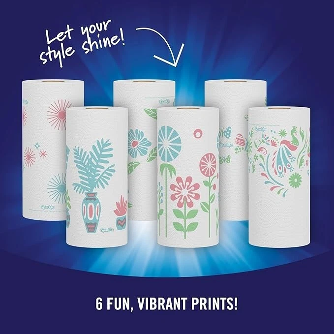 Free eBay listing template designed by dewiso.com Sparkle Pick-A-Size Paper Towels, Spirited Prints, 6 Double Rolls = 12 Regular Rolls, Everyday Value Paper Towel With Full And Half Sheets Sparkle Spirited Prints Paper Towels are strong for everyday messes, so you get strength, style and a pop of color at a value that is just right for your budget Each Pick-A-Size Double Roll has 110 2-ply sheets and is equal to 2 Regular Paper Towel Rolls, so you can change the roll less often Make the Bright Choice: Sparkle Pick-A-Size Spirited Prints Paper Towels help to keep your home clean and your wallet happy With Pick-A-Size Spirited Prints sheets, you always have exactly what you need to fit the task at hand, in style! Add a pop of color to your kitchen towels and home to handle everyday messes, DIY projects, outdoors & more Sparkle paper towels are made from sustainably sourced trees; our sourcing practices are certified by the Sustainable Forestry Initiative Fiber Sourcing Standard (SFI-000007) Each paper towel pack contains 6 Double Rolls of Spirited Prints Sparkle Pick-A-Size paper towels Contact us We can be contacted at any time through eBay messages if you have any questions, comments or product requests. We will respond to you within 24 hours and do our best to help you out! We encourage our customers to contact us with any questions or concerns! We'd like to be sure you are completely satisfied with your purchase. HAVE A NICE SHOPPING