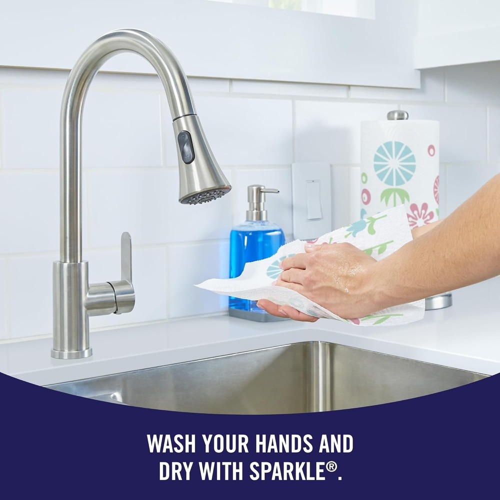Sparkle Pick-A-Size Paper Towels, Spirited Prints, 6 Double Rolls = 12 Regular Rolls, Everyday Value Paper Towel With Full And Half Sheets About this item Sparkle Spirited Prints Paper Towels are strong for everyday messes, so you get strength, style and a pop of color at a value that is just right for your budget Each Pick-A-Size Double Roll has 110 2-ply sheets and is equal to 2 Regular Paper Towel Rolls, so you can change the roll less often Make the Bright Choice: Sparkle Pick-A-Size Spirited Prints Paper Towels help to keep your home clean and your wallet happy With Pick-A-Size Spirited Prints sheets, you always have exactly what you need to fit the task at hand, in style! Add a pop of color to your kitchen towels and home to handle everyday messes, DIY projects, outdoors & more Sparkle paper towels are made from sustainably sourced trees; our sourcing practices are certified by the Sustainable Forestry Initiative Fiber Sourcing Standard (SFI-000007) Each paper towel pack contains 6 Double Rolls of Spirited Prints Sparkle Pick-A-Size paper towels