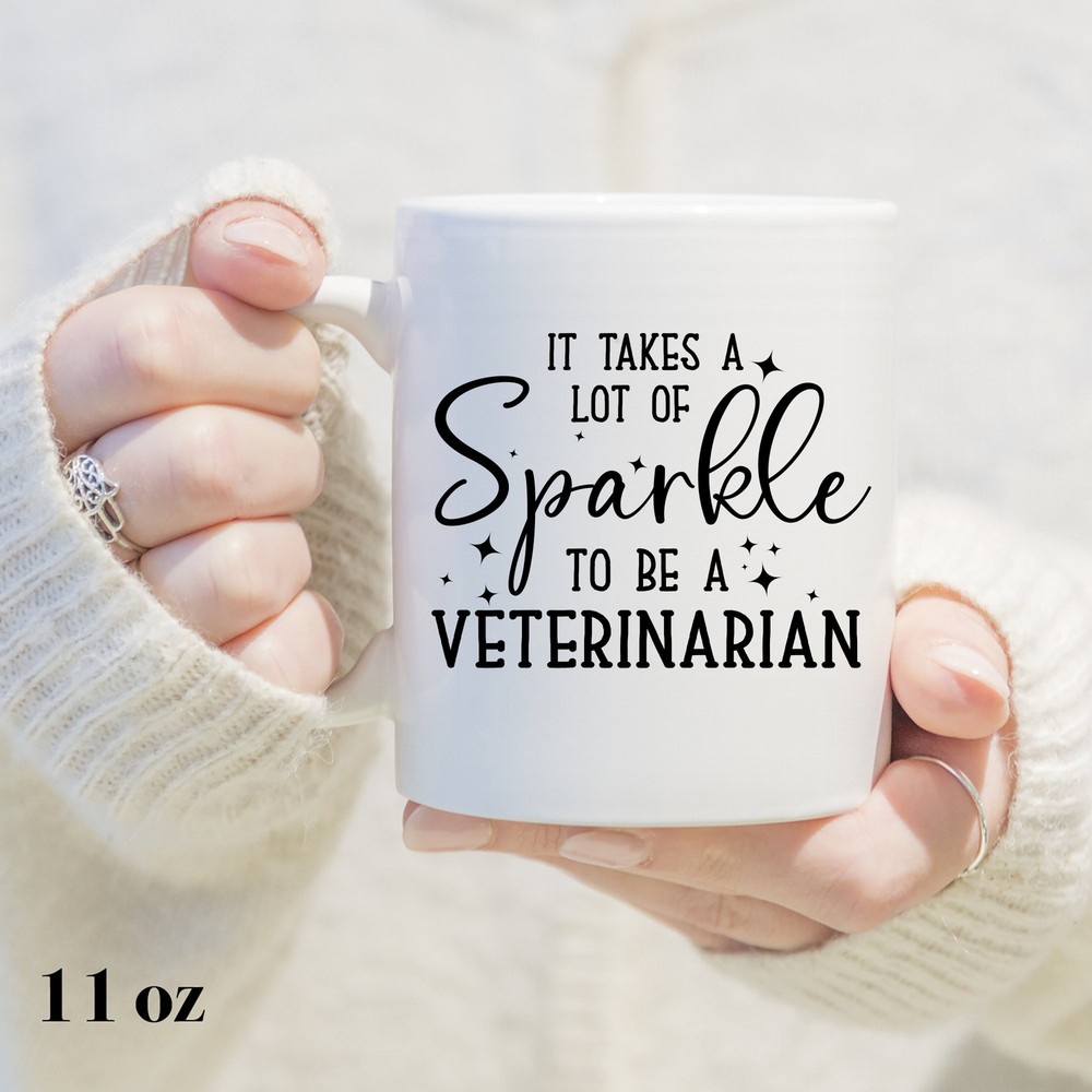 Veterinarian Sparkle Vet Mug Veterinarian Gift Vet Tech Mug Vet Student Gift Product Details.. This high quality 11oz. ceramic white mug has a premium hard coat that provides crisp and vibrant color reproduction sure to last for years. Perfect for all hot & cold beverages. The highest quality printing possible is used. It will never fade no matter how many times you wash it. Material: 100% Ceramic. Print both sides. Dishwasher and Microwave Safe. High Gloss + Premium White Finish. Printed in the U.S.A. Personalized & Custom. We support personalized and custom mug to add custom, when placing an order, you can add notes to the "order note" in shipping address section. Also you can contact us directly via message. Shipping Info. Ready to ship in 1 to 2 business days, All products are made-to-order and proudly printed in the United States. Shipped by USPS and DHL, You will receive your order in 5-7 days. Replace & Refund. All products are defective during shipping broken, chipped will be replaced free of charge. You are not satisfied with the product, we will refund 100% money to you. If any other issues arise, please do not hesitate to message, we would be more than happy to assist you.