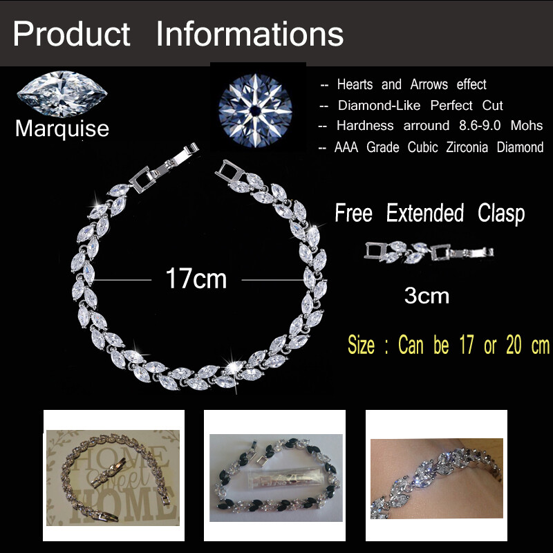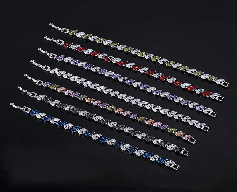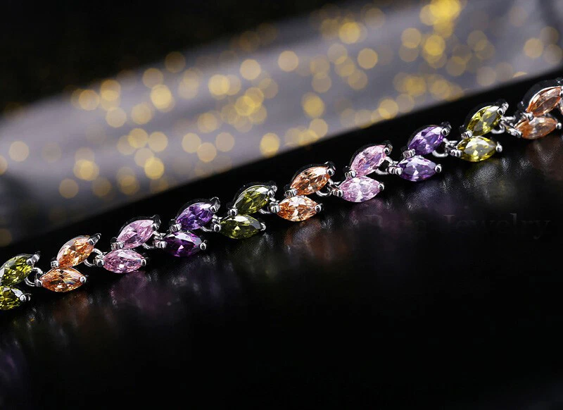 Sparkling White Cubic Zirconia Colorful Leaf Women Link Chain Bracelets Bangles Specifications: 1. Condition: New 2. Material : Cubic Zirconia 3. Bracelet Size : 17 cm + 3 cm Extended Clasp Features: 1. Cubic Zirconia High Quality Material - Diamond-like Brilliance , Prong Setting and CZ Stone are stable. 2. This Charm Bracelet Length : 17cm , Plus a 3cm free Extended Clasp . So Size can be : 17 or 20 cm 3. Perfect for Various Occasions: Ideal for Wedding, Prom, Pageant, Parties, Homecoming, Black Tie Formal Affairs, Holidays , Birthday , Christmas , Valentine's Day , Anniversary and Special Occasions. 4. A Perfect Jewelry Gift for Women , Girls , Mother , Wife , Lover , Fiancee , Friends . Package Includes: 1Pc Charm Bracelet Payment Delivery details Terms of sales & Feedbacks About us & Contact us Our commitment Payment 1. We only ship item to your Ebay verified address . Please Make sure all address are the same 2.Please leave note in ebay when making the payment if you have any special request (colors/size). Delivery details We only send items to the registered eBay address.Items will be shipped within 2 business days from the date payment is received (not include public holiday and weekend) . As per eBay regulations, import duties, taxes, and customs charges are the buyer's responsibility. Please check with your country's customs office to determine what these additional costs may be prior to bidding or buying. Terms of sales & Feedbacks After-Sale Please contact us to request a return/replace/refund authorization .It will be best if you use ebay message to contact me. 1, Return and replacement request is available only the requests within 30 days after parcel received. 2, Returning the item as the same condition as received. Situation and solution Defectives ---Please contact us and provide a photo of the defective part. After situation confirmed,we will offer you refund/return/replacement according to the situation Not as Described ---Please contact us and provide a photo of the wrong part. After situation confirmed,we will offer you refund/return/replacement according to the situation Not Received ---Please undersatnding shipping on the way was out of our control ,because of the busy shipping season,holidays,bad weather or force majeure etc. It may be delay for days. But if it took too much time and not deliveried, Please message me, I will offer you solution for it. Feedbacks 1. If you are satisfied with our service, please leave us a + Good feedback and rate the details of the transaction (DSR) with a. . When you rate the shipping time part please take international transit into consideration.] Your recognition will make us more confident to develop business and serve you better. 2. Please contact us first if you have any problem with the items,we will solve it in time ! 3. Please do not leave Neutral or Negative Feedback before you contact us, Thanks For Your Business ! About us & Contact us Working time: Chinese time(Eastern eight zones):Monday to Friday ,9:00 am to 6:00 pm. We do not work on chinese legal holiday. Message reply: We will reply all messages within 24 hours of business time. Please contact us via ebay message, it was the best way for both you and us to solve problems. Any questions or anything you need, please feel free to contact us. Our commitment 1.Wholesale price will be offered to you if you need in bulk ! 2.About Size