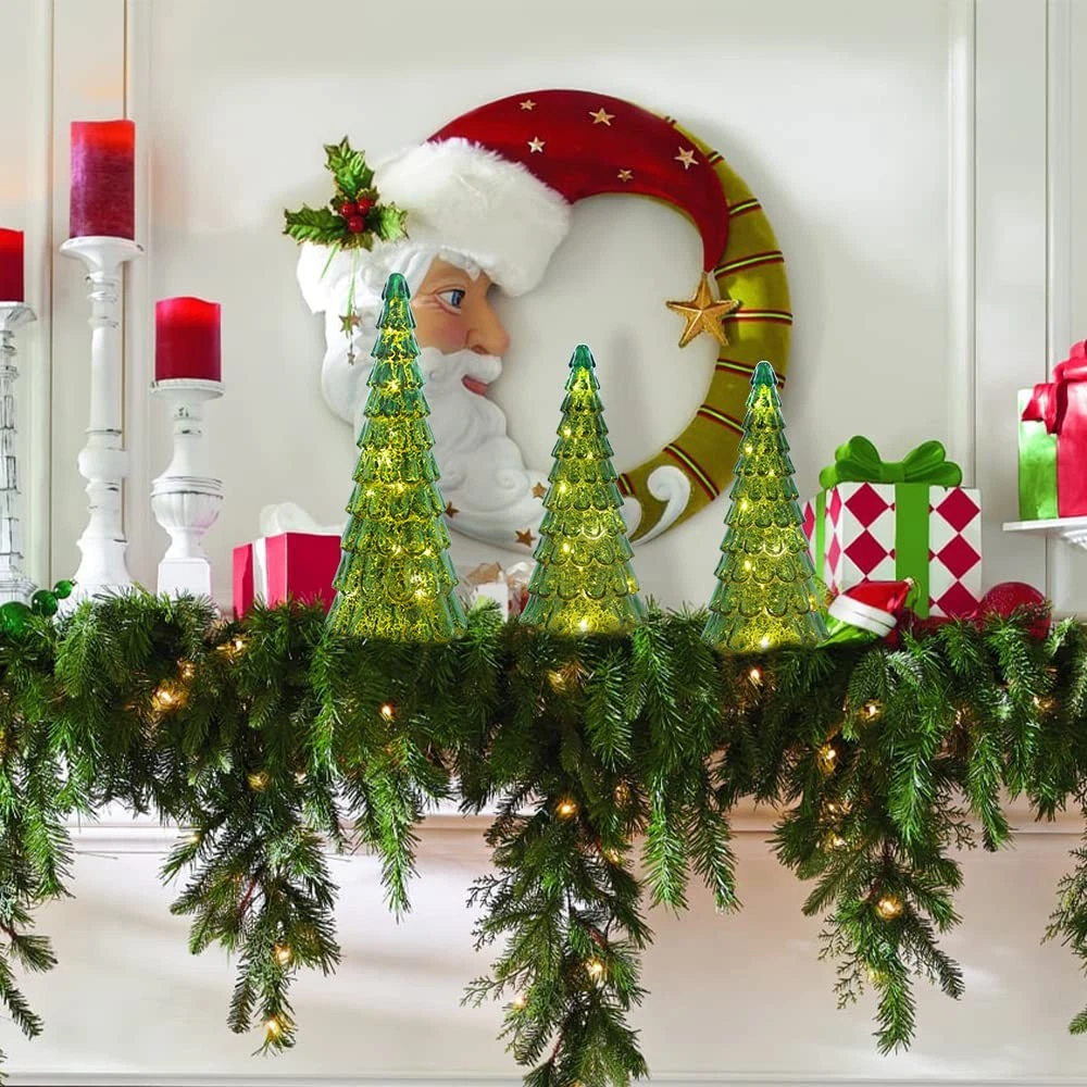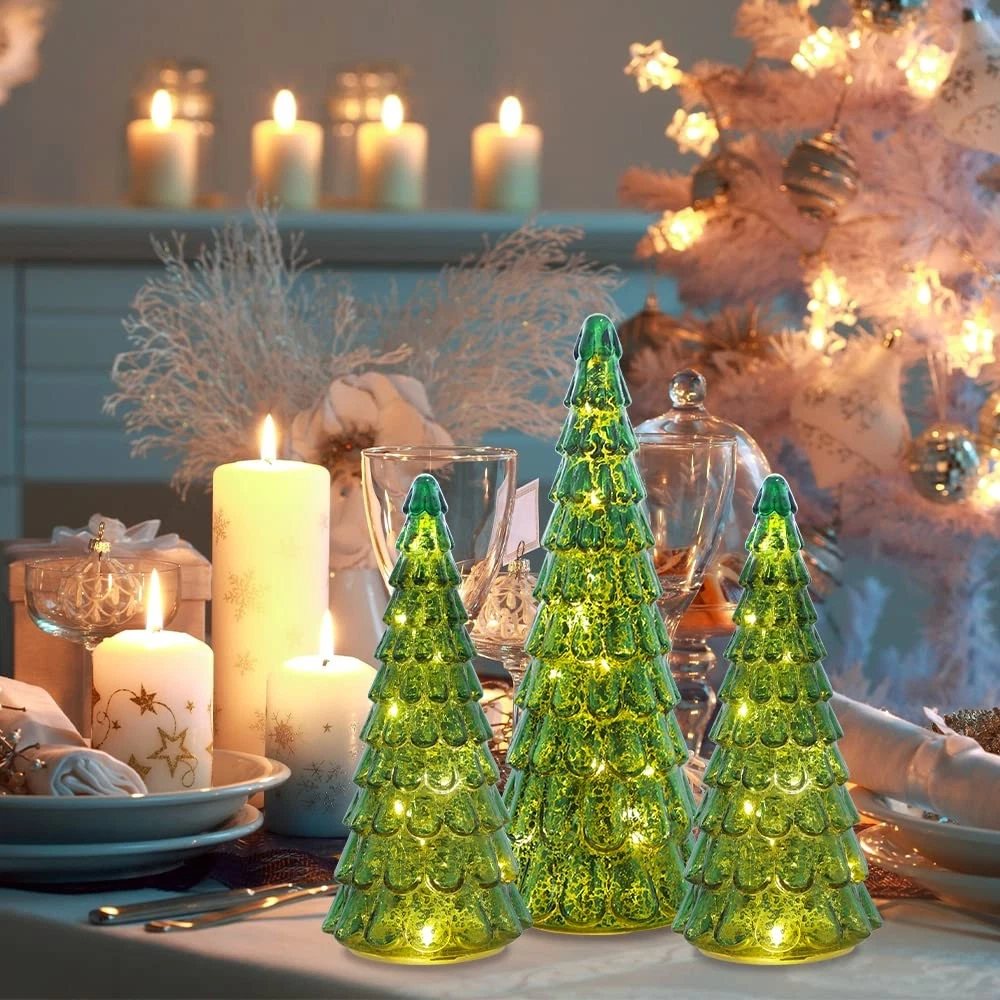 Sparkling LED Glass Christmas Tree Set - 3-Piece Indoor Holiday Decor