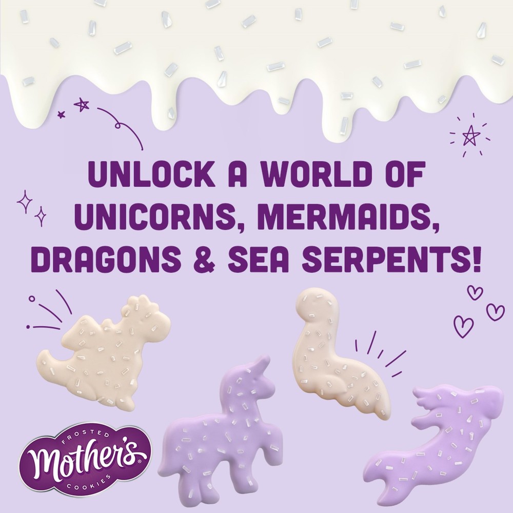 Mother's Sparkling Mythical Creatures Cookies, 1 oz Individual Bags, 12 Count Receive 12 individual 1 oz cookie pouches Bite-size shortbread cookies coated in frosting, topped with silver sprinkles A twist on circus animal cookies, with a magical menagerie of creature shapes Shapes include mermaids, unicorns, dragons and sea serpents Share the classic homemade taste of Mother’s with your loved ones, makes an excellent Valentine’s Day gift, a delightful Halloween party treat, or a perfect addition to Holiday desserts. Spark imagination with every tasty creation! Stop and taste the frosting with Mother's Sparkling Mythical Creatures Cookies and unleash a mystical menagerie of creature-shaped snacks. Each bite-size shortbread cookie is fully frosted purple and white and topped with silver sugar sprinkles. The whimsical creature shapes take you on a mythical adventure with every delicious bite. With 12 convenient individual-sized bags, these snacks bring magic to school lunches, on-the-go snacking and kids’ parties. Grab one and fill snack time with fun, frosted fairy tales. Shipping We offer FREE shipping on all orders! We ship within Three business days of payment, usually sooner. We use a selection of shipping services such as UPS, FedEx, USPS etc. We only ship to the lower 48 states, no APO/FPO addresses or PO Boxes allowed. Local pickups and combined shipping options are not provided at this time. Return You can return a product for up to 30 days from the date you purchased it ONLY if it's in the original condition. The product cannot be used or open. Any product you return must be in the exact same condition you received it and in the original packaging. Please keep the receipt. Feedback Customer satisfaction is very important to us. If you have any problem with your order, please contact us and we will do our best to make you satisfied. Contact Us If you have any queries, please contact us via ebay. We usually respond within 24 hours on weekdays. Please visit our eBay store to check out other items for sale! Thank you for shopping at our store.
