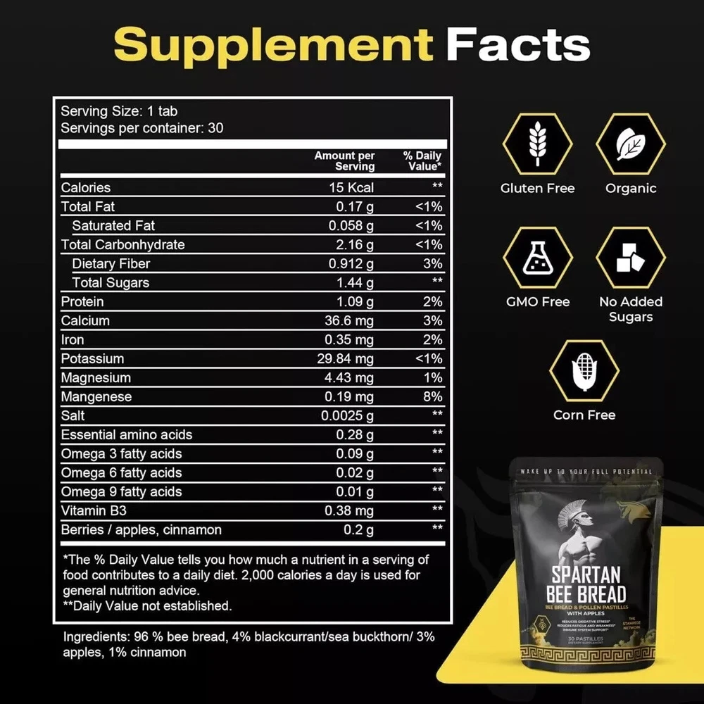 Spartan Bee Bread Chewable Natural Multivitamin | High Absorption & Organic.