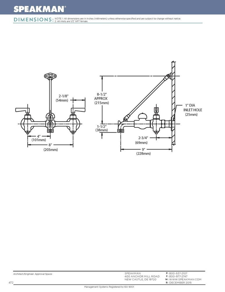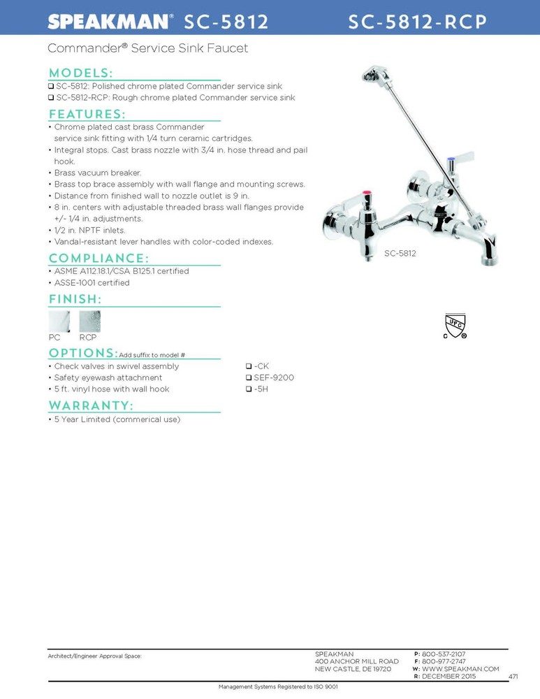 UTILITY FAUCET: This durable commercial sink faucet is a reliable fixture for utility sinks, janitorial closets and other maintenance services and features a useful spout hose thread and pail hook. PREMIUM QUALITY: Made of cast brass, the utility or laundry faucet is ideal for placement over big utility sinks, and features lever handles and ¼ turn ceramic sink faucet cartridges. WALL MOUNT: Sink faucets are designed for through the wall mounting, and are supplied with wall flanges and mount screws along with a brass top brace assembly. COORDINATING COLLECTION: This commercial wall mount faucet is part of our Commander range of sink fixtures and accessories, which includes a range of kitchen, restroom and laboratory faucets. SPEAKMAN PLUMBING: From commercial plumbers’ supplies to bathroom accessories to fall in love with, Speakman delivers quality, innovation and performance with every product.