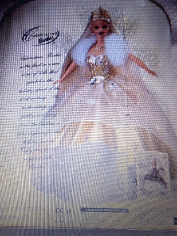 This is a special edition Barbie doll from the Holiday Celebration series, manufactured by Mattel in 2000. The doll is 11 inches in length and 12 inches in width, with straight blonde hair and hazel eyes. It comes in its original packaging, which has never been opened. The doll includes 8 pieces, including the outfit, accessories, and doll itself, and features a celebrity theme. It is an original, licensed reproduction, and not handmade. The doll is of Caucasian ethnicity and targeted at adult collectors.