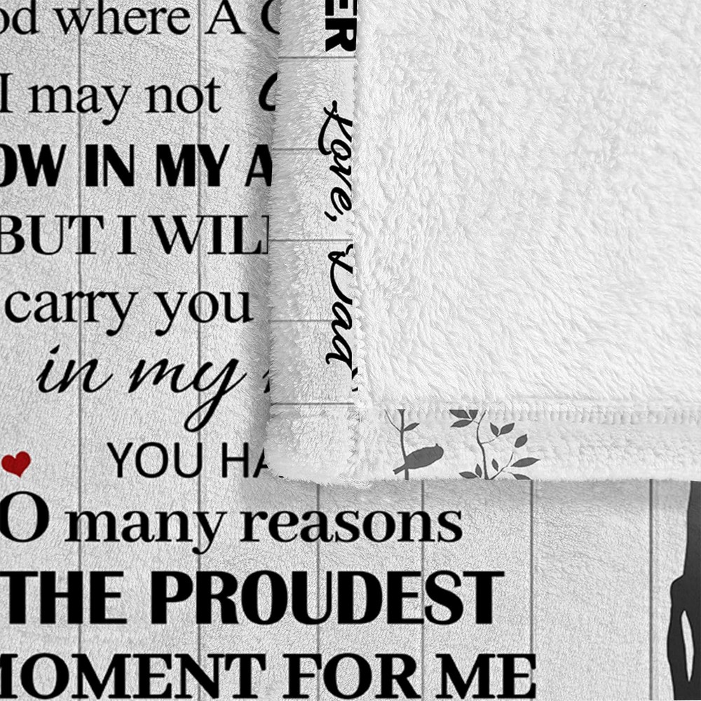 Sweet Daughter Gift: Our cozy and warm blanket is the perfect gift for your daughter's birthday or any special occasion. Made from anti-pilling flannel, it provides comfort and love that she'll cherish forever Gifts for Daughter From Dad: With meaningful words printed on the blanket, this gift is a beautiful reminder of the bond between father and daughter. It's a thoughtful way to show your love and appreciation, bring a smile to your daughter From Dad to Daughter Gifts: This Daughter Blanket is specifically designed as a gift from a father to his daughter. It's a heartfelt gesture that will make her feel loved and special Daughter Gifts from Dad: Our Blanket is both soft and durable. It's anti-pilling flannel fabric ensures it will remain cozy and retain its warmth throughout the years. Whether it's for travel, camping or home decor, it's designed to fulfill your daughter's needs Perfect Gift Idea: Our Blanket is not just for birthdays - it's a versatile gift that can be given on any occasion. Whether it's a daughter's graduation, wedding, or simply a gift to show your love, this blanket is sure to be appreciated