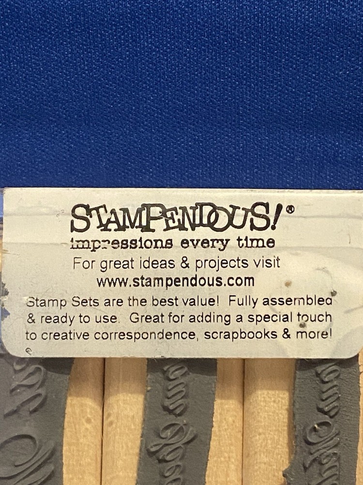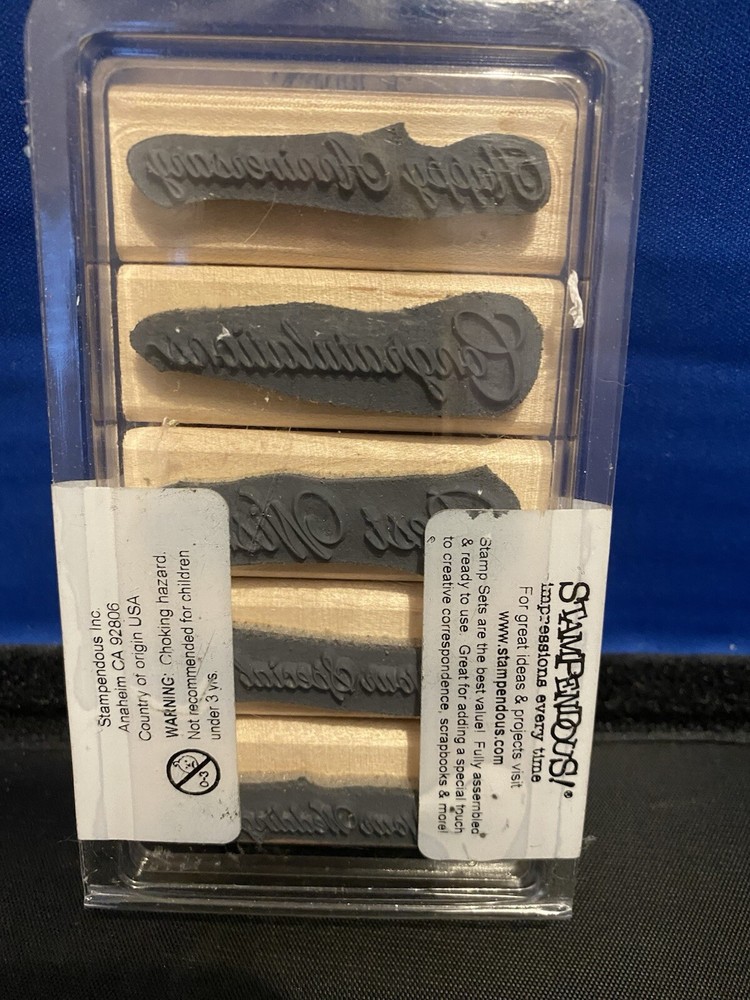 Brand: Stampendous Craft: Rubber Stamping, Scrapbooking, Etc. Product: 5 Wood Mounted Rubber Stamps gtin13: 744019146891 Type: Wood Stamps Material: Rubber Theme: SPECIAL MESSAGES SET UPC: 744019146891 Use: Card Making, Paper Crating, Etc. Country of Manufacture: United States MPN: SWS021