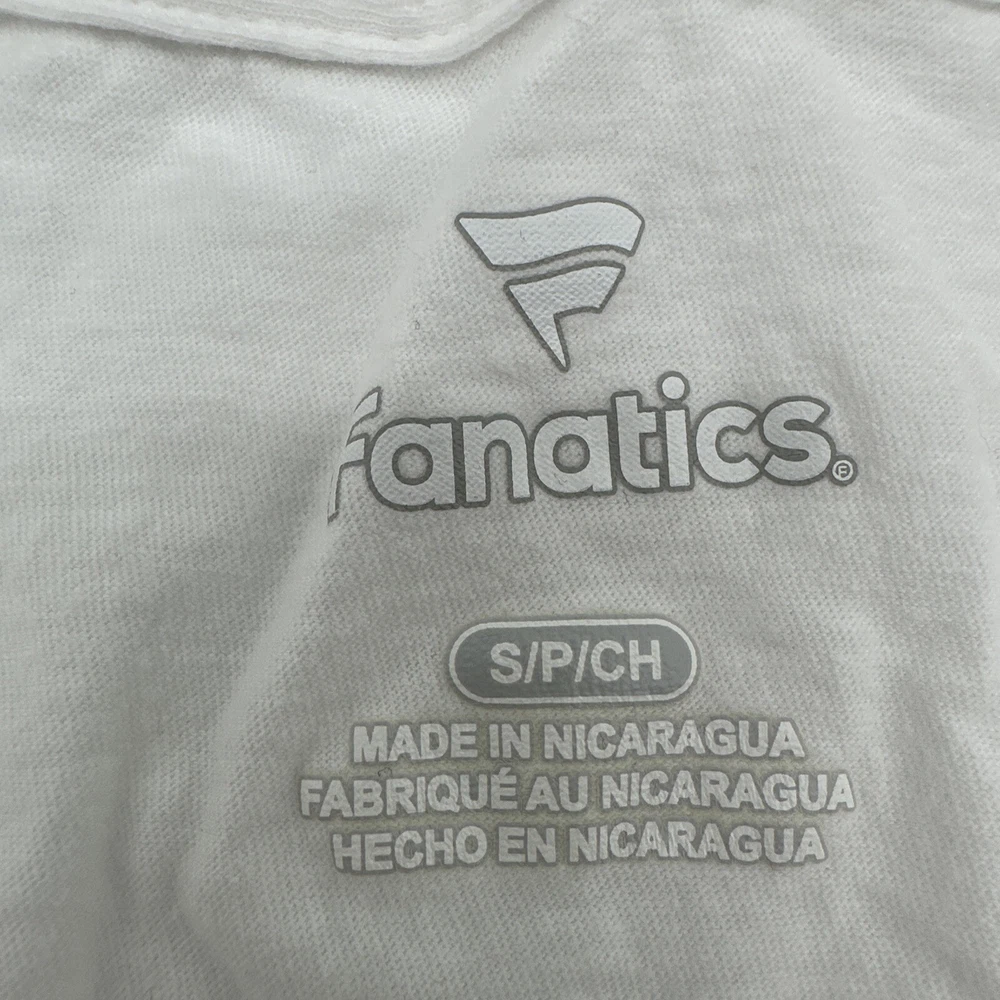 Size Type: Regular Material: Cotton, Polyester Closure: Pullover Color: White Country/Region of Manufacture: Nicaragua Occasion: Casual Theme: Classic Sleeve Length: Short Sleeve Fit: Regular Style: Basic Department: Women Type: T-Shirt Pattern: Graphic Print Brand: Fanatics Features: Easy Care Size: S Neckline: V-Neck