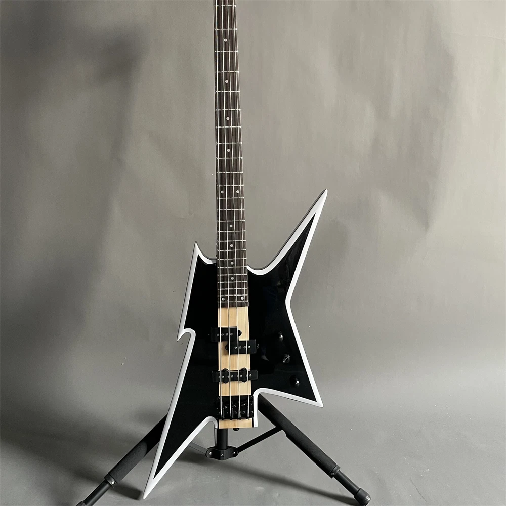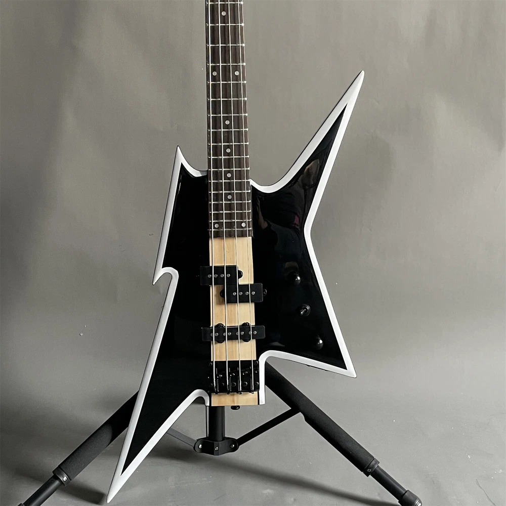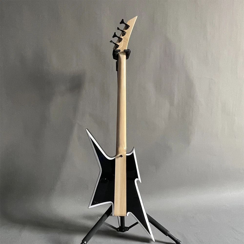 Special Shape Electric Bass Guitar Black Basswood Body Black Parts Maple Neck