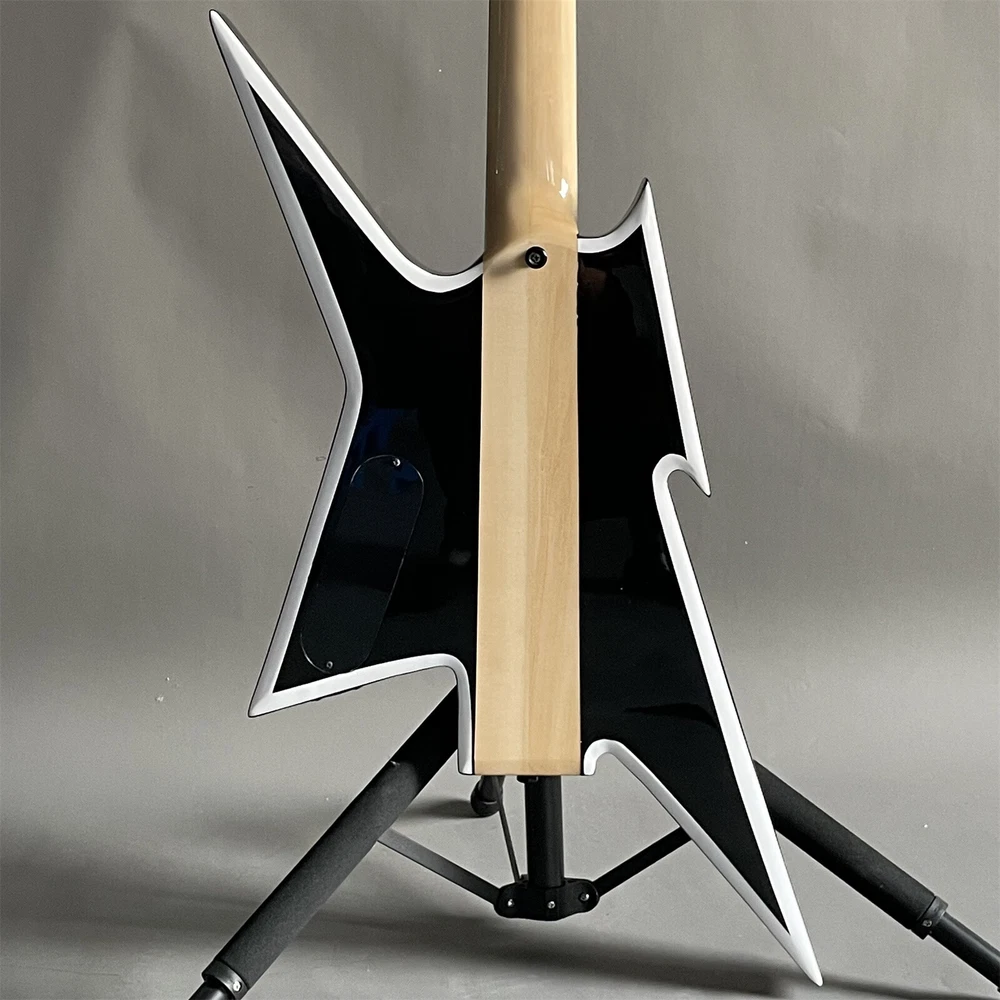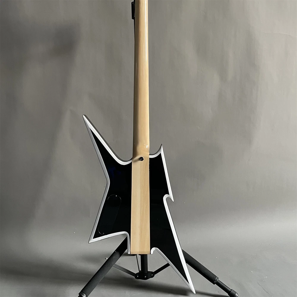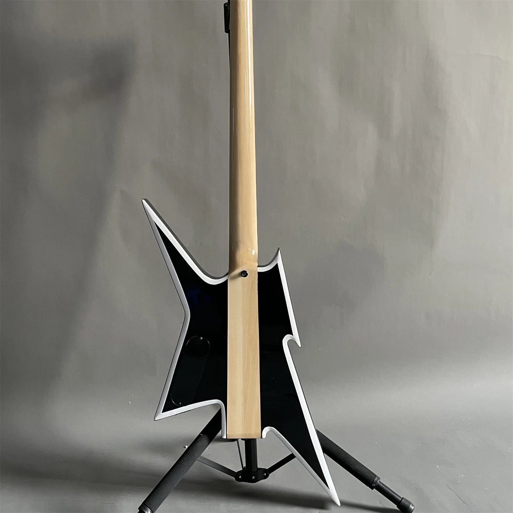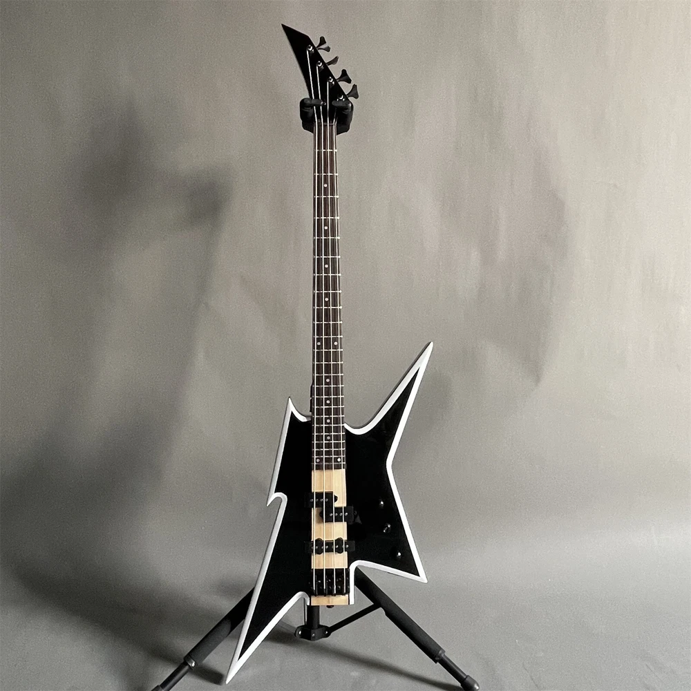 Special Shape Electric Bass Guitar Black Basswood Body Black Parts Maple Neck