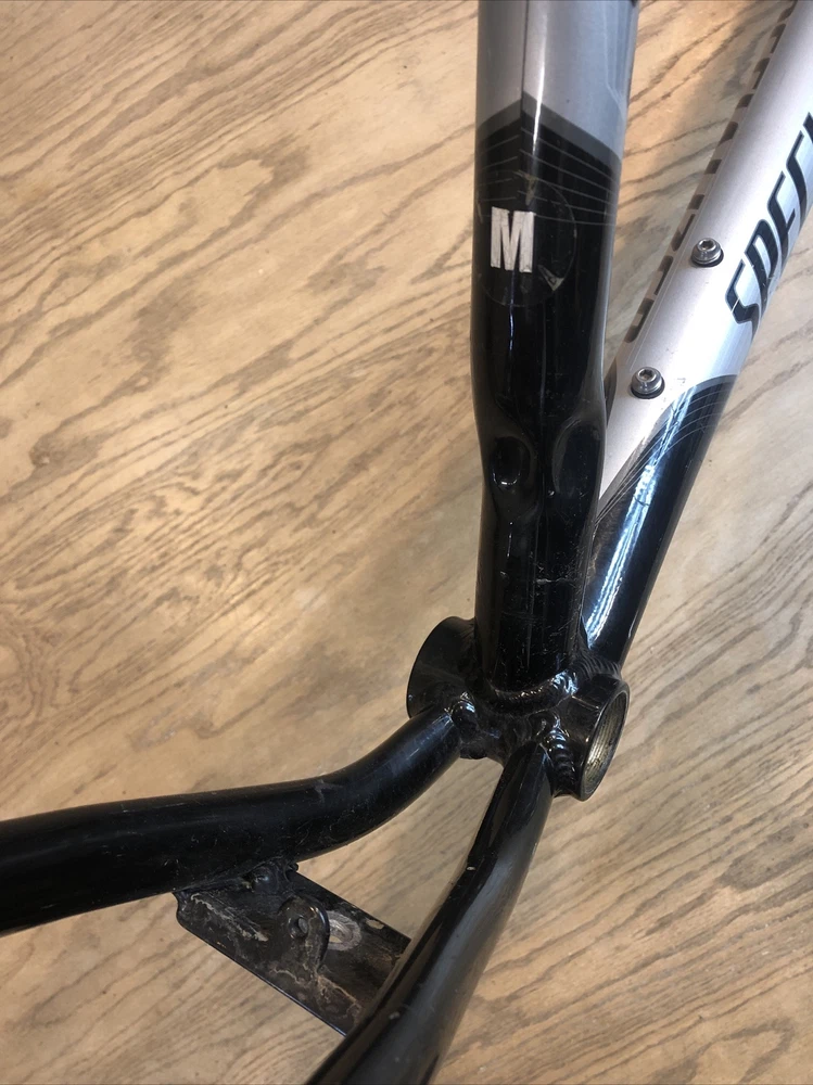 Thank you for your interest in this excellent frame with a history of moderate use. There are numerous surface marks, scratches and paint chips. The drop outs, bottom bracket threads and head tube are in good shape. Measurements: Seat tube center of BB to collar: 16” Top tube actual: 22.5” Head tube: 1-1/8” x 19cm Dropouts: 135mm QR