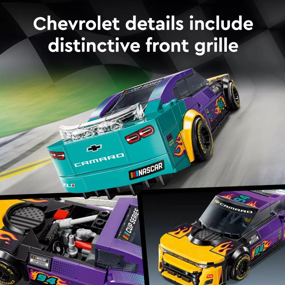 NASCAR toy car for kids – LEGO Speed Champions NASCAR Next Gen Chevrolet Camaro ZL1 race car toy for boys and girls ages 9 and up & NASCAR fans 1 minifigure included – This collectible Chevy toy includes a NASCAR driver minifigure with helmet that kids can place behind the wheel to stage their own NASCAR races Authentic Chevrolet details – NASCAR Next Gen Chevrolet Camaro ZL1 race car model features distinctive rear spoiler, front grille, headlights and realistic interior details LEGO toy car display model – After kids have raced the buildable model car they can proudly display it on a shelf or bedside table Racing car gift – This NASCAR playset provides a fun build-and-play experience and is a gift idea for kids ages 9 and up, NASCAR fans, and adult car-model collectors alike Bigger racing adventures – Look out for more LEGO Speed Champions cars (sets sold separately) with authentic details Measurements – This 328-piece buildable model car measures over 1.5 in. (4 cm) high, 6.5 in. (16 cm) long and 2.5 in. (7 cm) wide