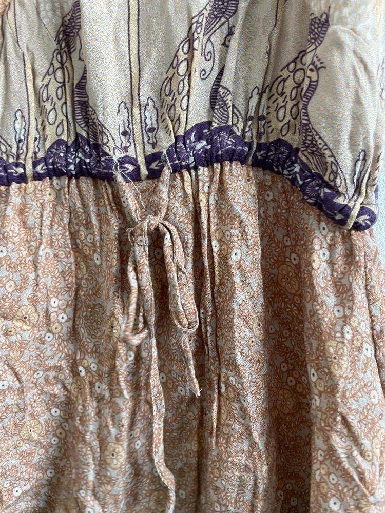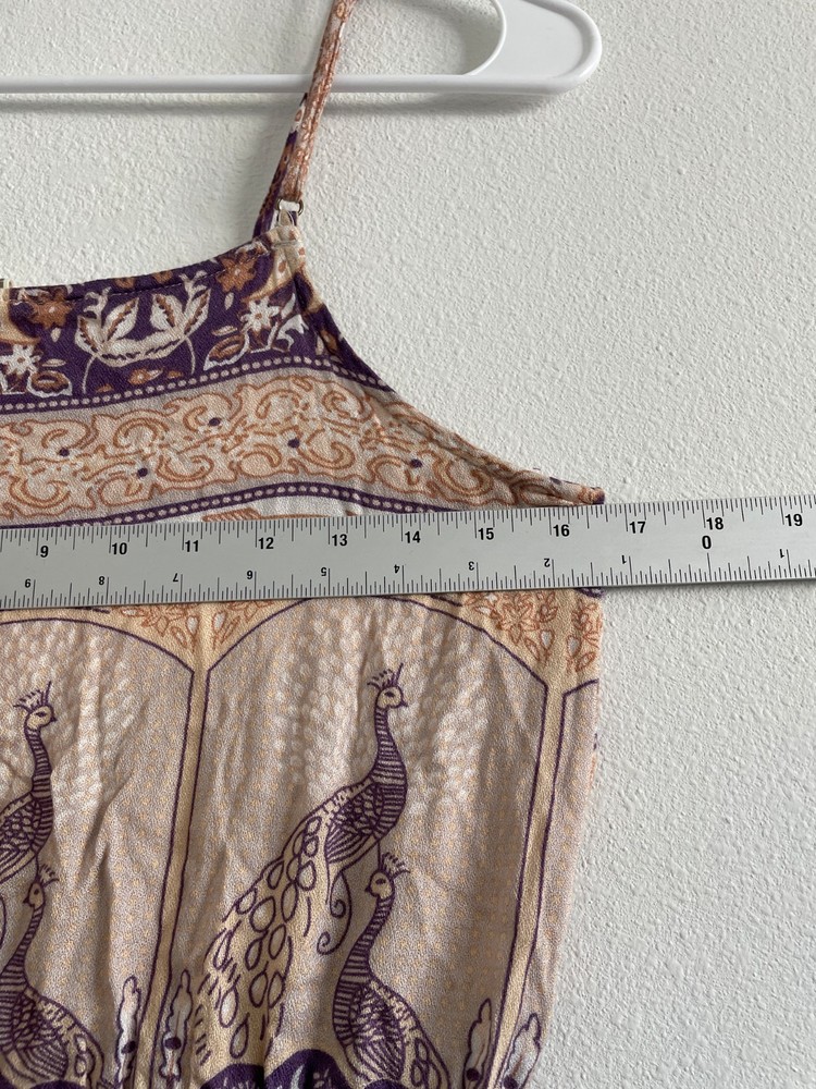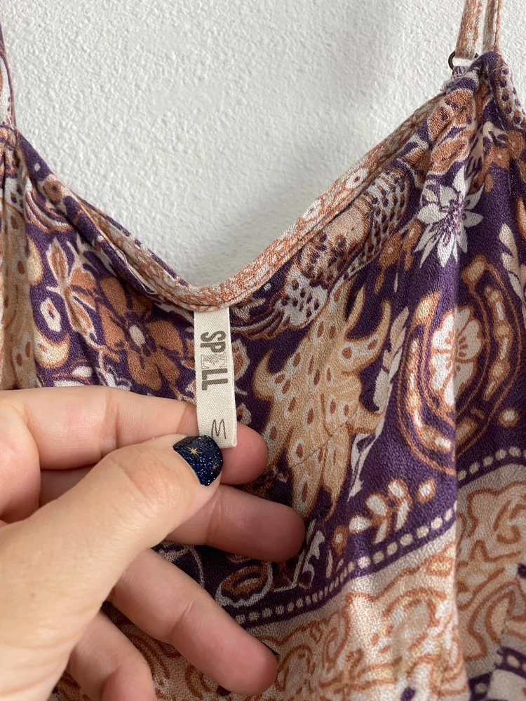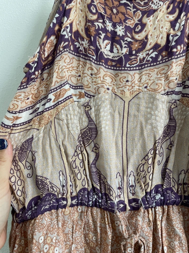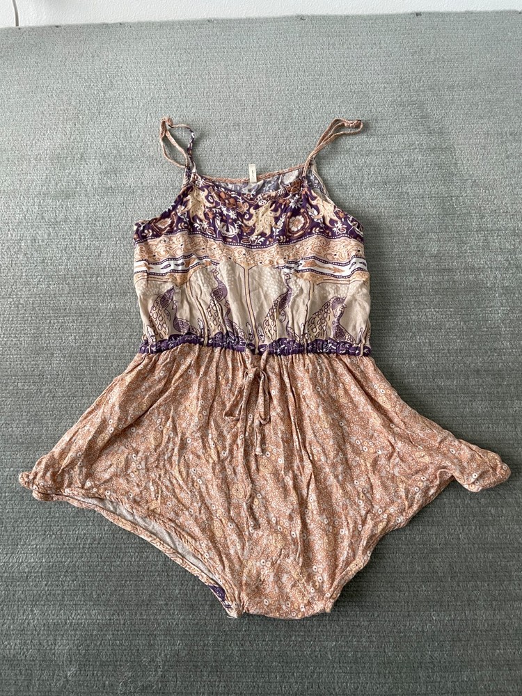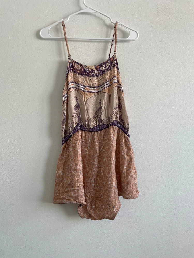 Spell & Gypsy Romper Women M Beige Purple Floral Paisley Play Drawstring Boho Overall good used condition. No Flaws.