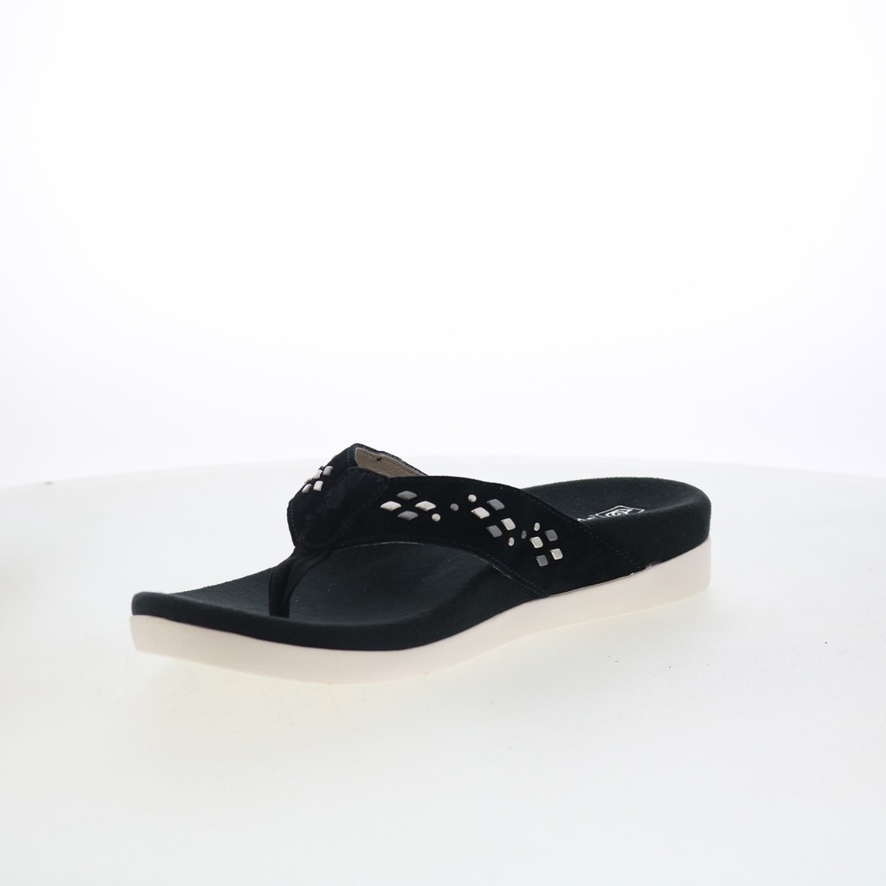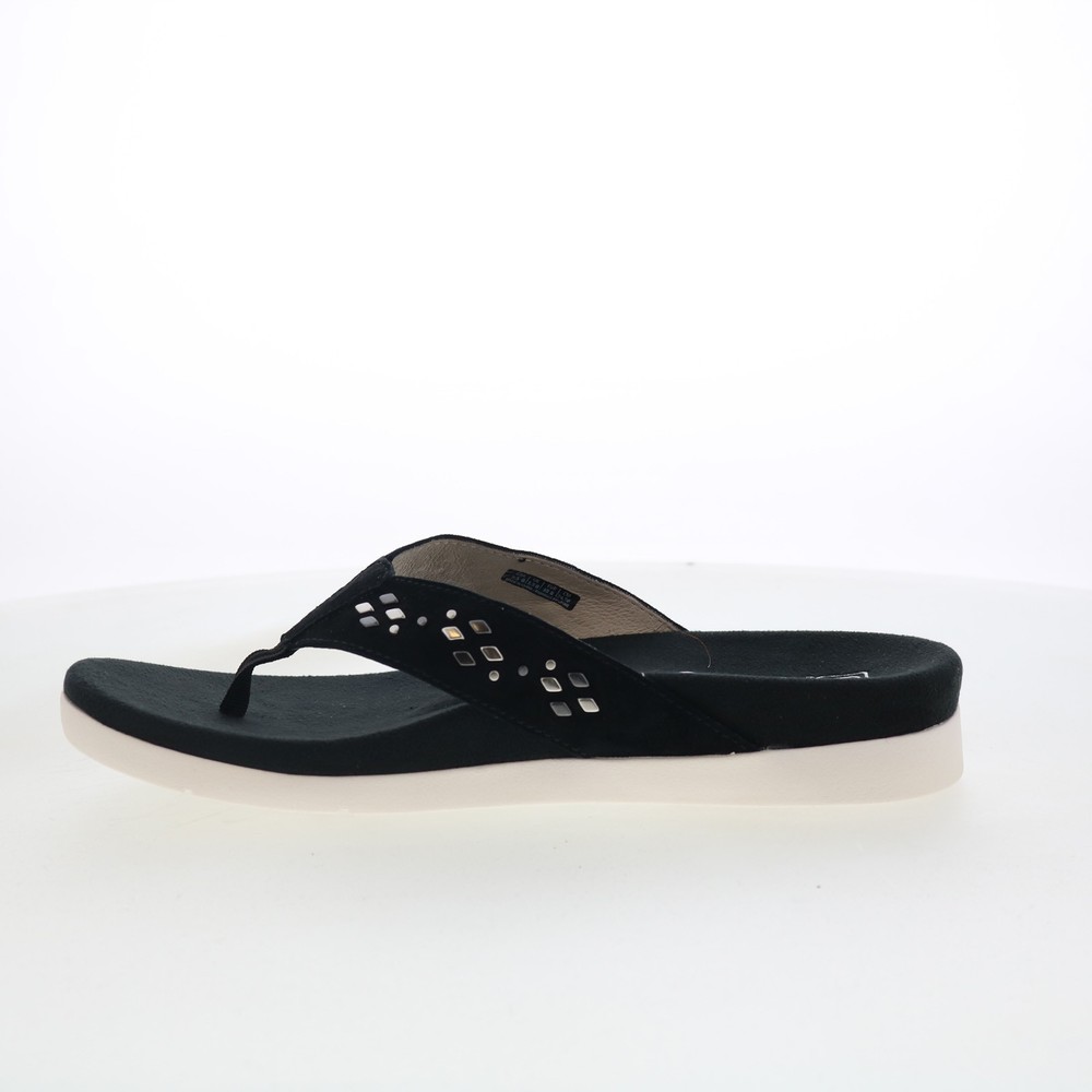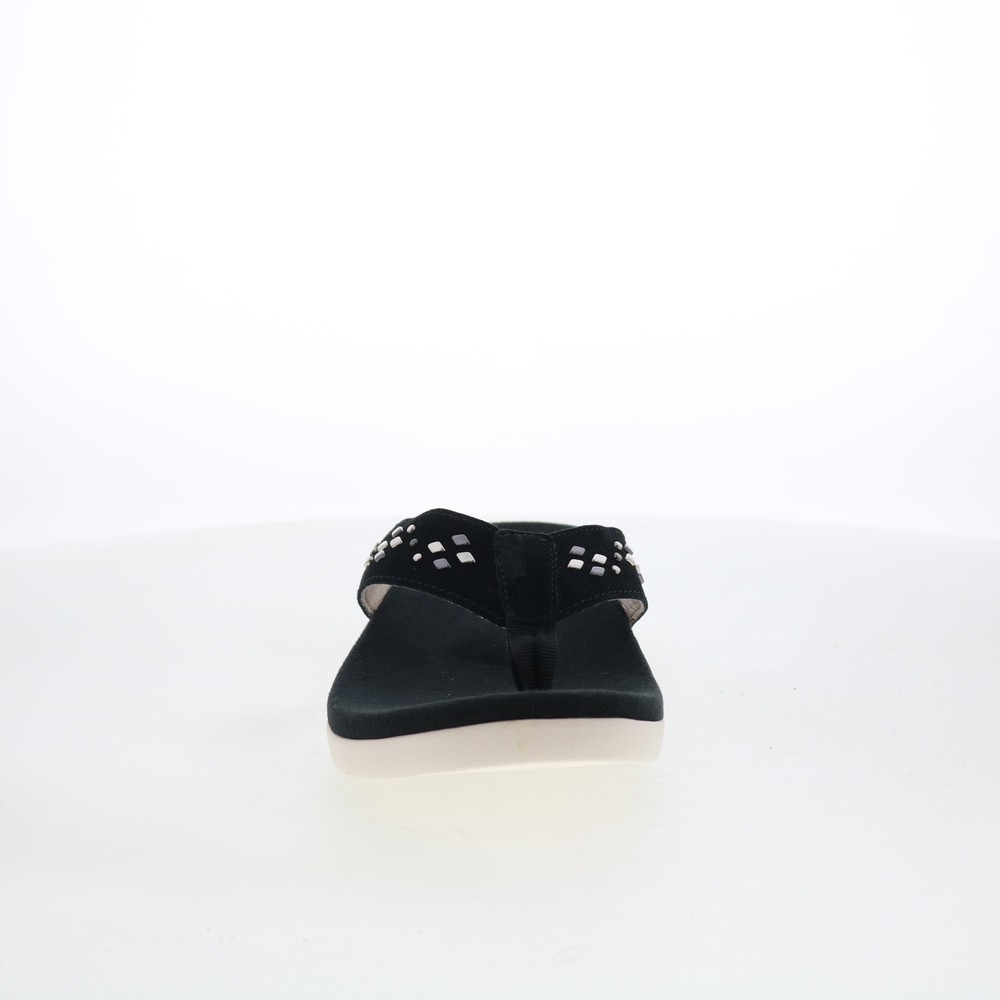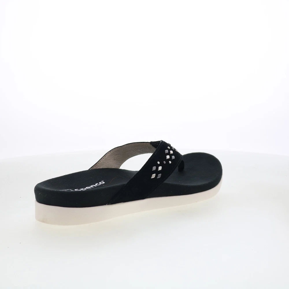 Spenco Laguna Stud SP1139BLK Womens Black Suede Flip-Flops Sandals Shoes