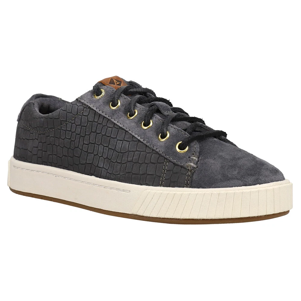 Anchor Plushwave Croc Lace Up Sneakers Product Details Leather upper Lace up closure PLUSHWAVE cushioning Rubber outsole Our lace-to-toe sneaker is a perfect hybrid of dressy casual, thanks to croc-embossed leather and metallic gold details. Provides extra oomph and versatility to any outfit. Additional Details Color: Grey Occasion: Casual Gender: Womens Age: Adult Brand: Sperry