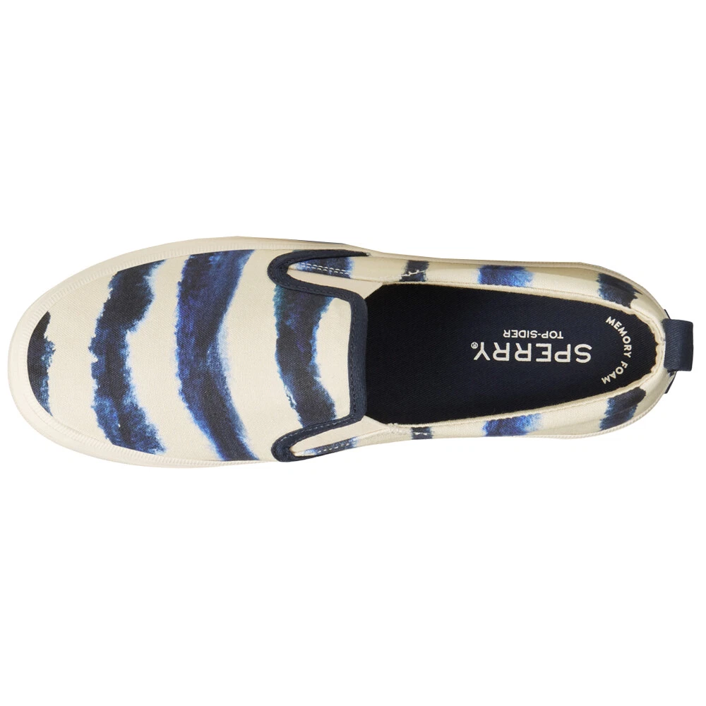 Crest Tie Dye Slip On Sneaker Product Details Canvas upper Slip on entry Memory foam insole Non marking rubber outsole The Sperry Crest Twin Gore style is the perfect staple for any casual wardrobe. This stylish slip-on sneaker is crafted with a textile upper in an easy slip-on silhouette for on-the-go style. Additional Details Color: White Occasion: Casual Gender: Womens Age: Adult Brand: Sperry