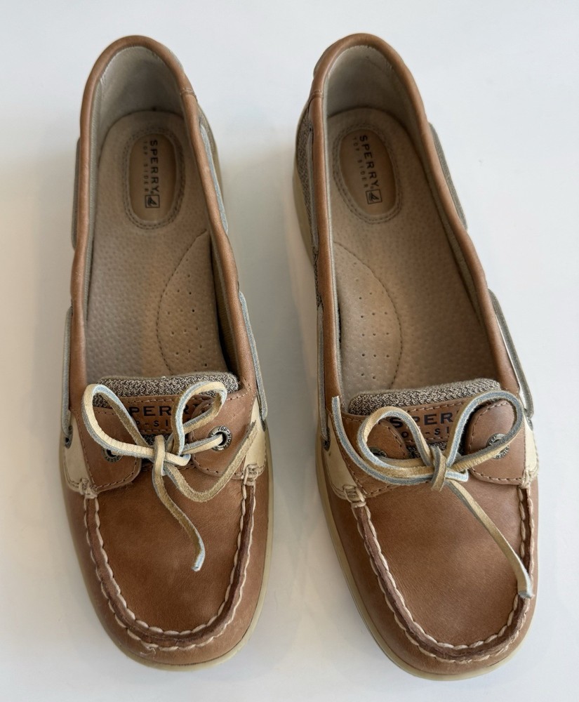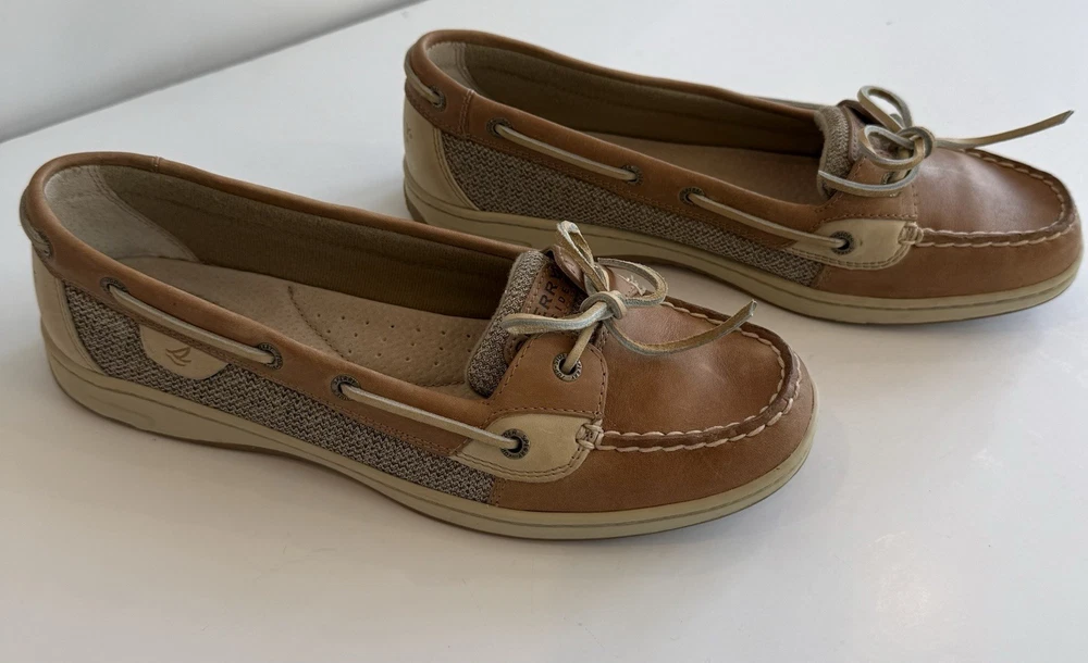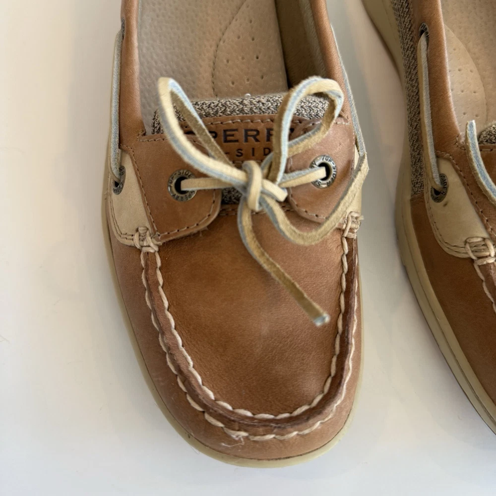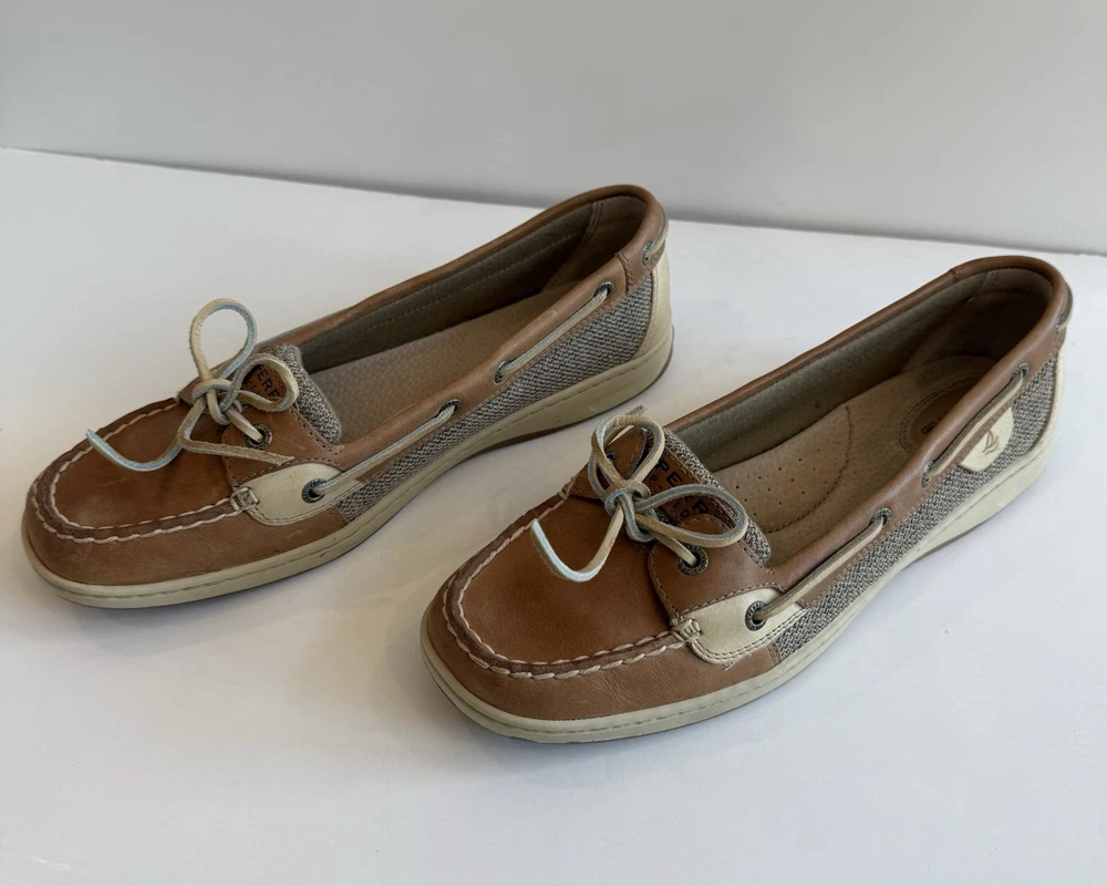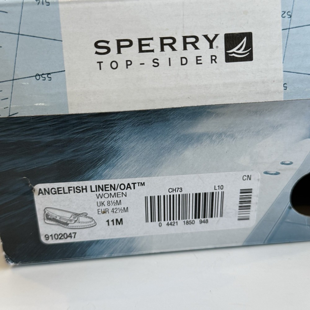Sperry Top Sider Angelfish Linen Oat Leather Boat Shoes In Original Box Women’s 11 M Excellent Preloved Condition. Thank You For Viewing My Listing! Item Cleaned According To EBay’s Standards. RETURNS: I accept returns on items and will refund buyer on cost of item as long as the item is returned in the same condition as it was originally shipped.Buyer pays shipping.