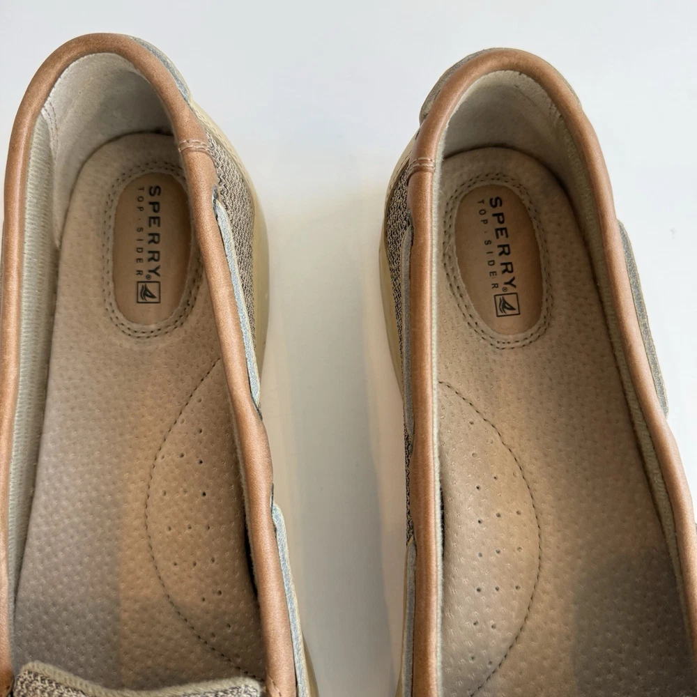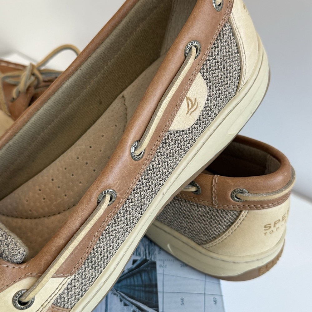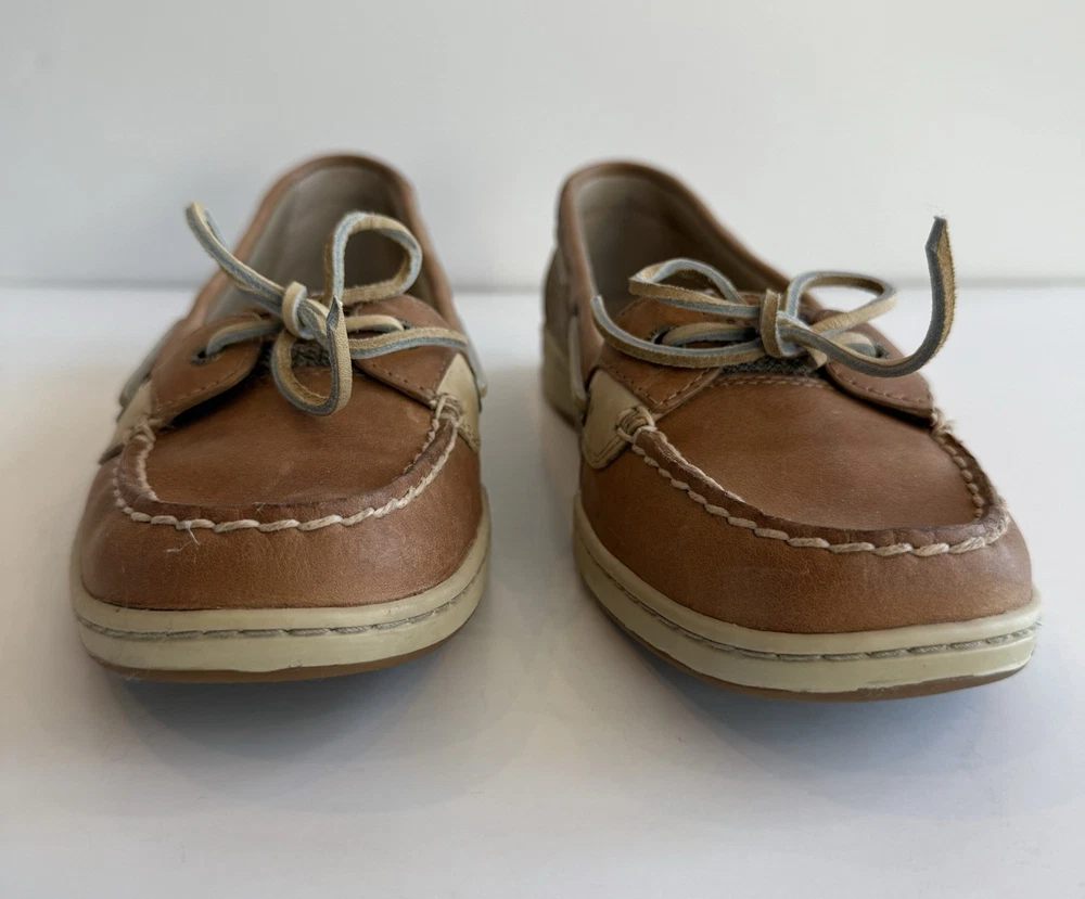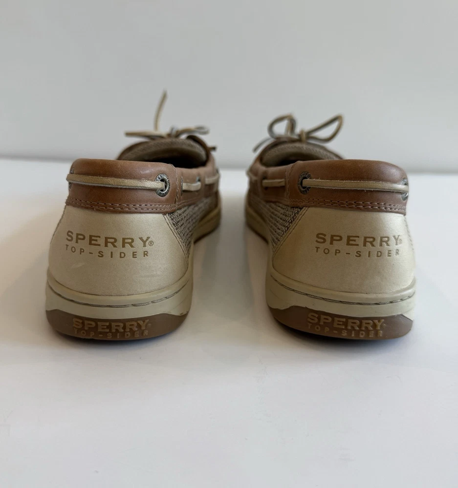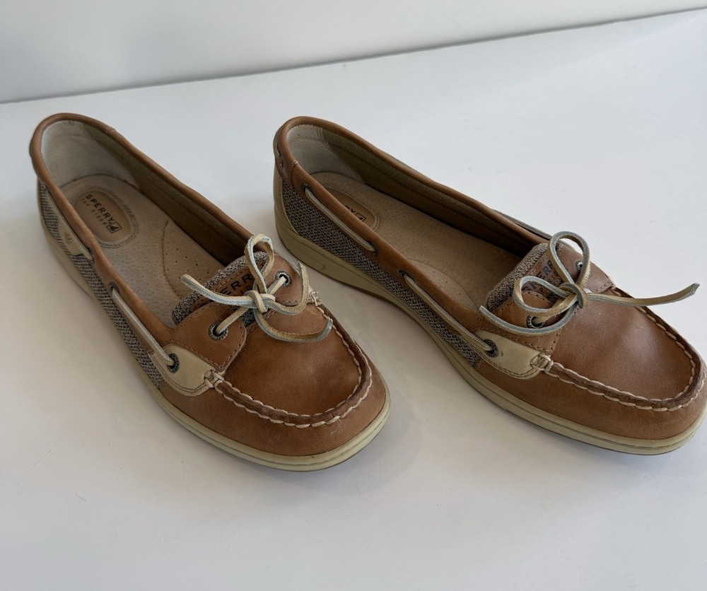 Sperry Top Sider Angelfish Linen Oat Leather Boat Shoes In Original Box Women’s 11 M Excellent Preloved Condition. Thank You For Viewing My Listing! Item Cleaned According To EBay’s Standards. RETURNS: I accept returns on items and will refund buyer on cost of item as long as the item is returned in the same condition as it was originally shipped.Buyer pays shipping.