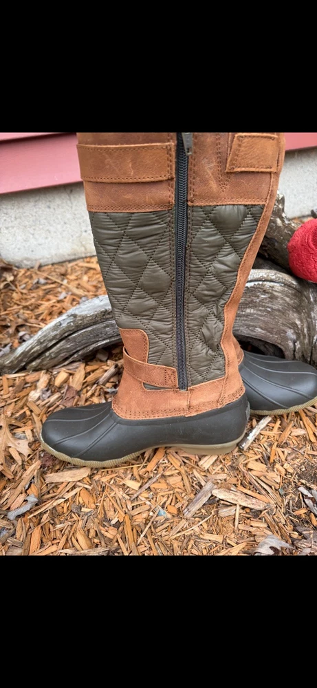 SPERRY Women's Calf High Leather Boots are perfect for winter and outdoor activities. These boots are made of high-quality leather and have a solid pattern with a round toe shape. The lace-up closure ensures a secure fit, while the flat heel style provides comfort. These mid-calf snow boots are ideal for travel, activewear, and casual occasions. They come in a beautiful brown color and have a medium calf width. The boots are new with tags but do not come with a box. With a SPERRY brand name, these boots are a great addition to any wardrobe, perfect for the Equestrian, Outdoor, or Native American theme.